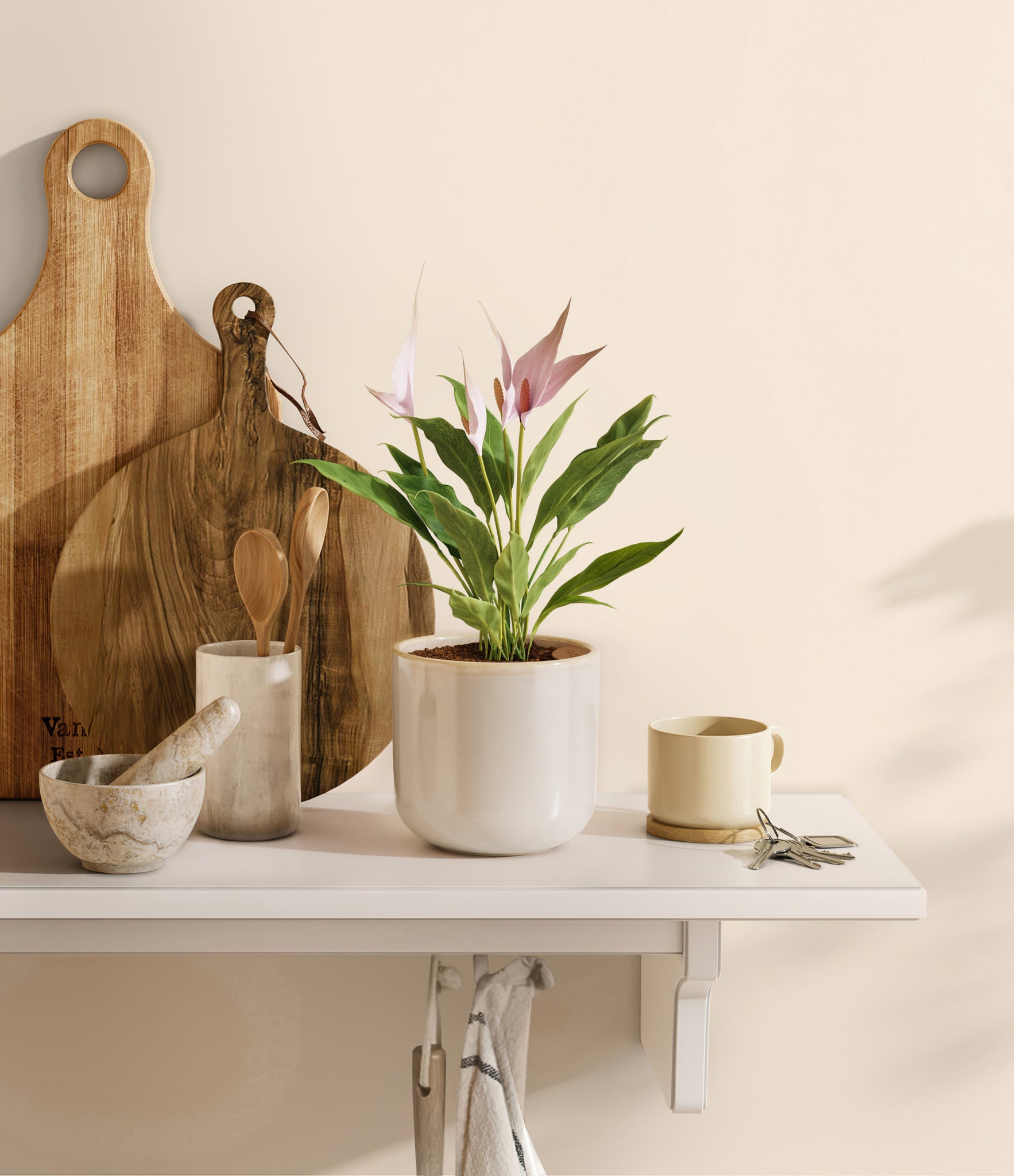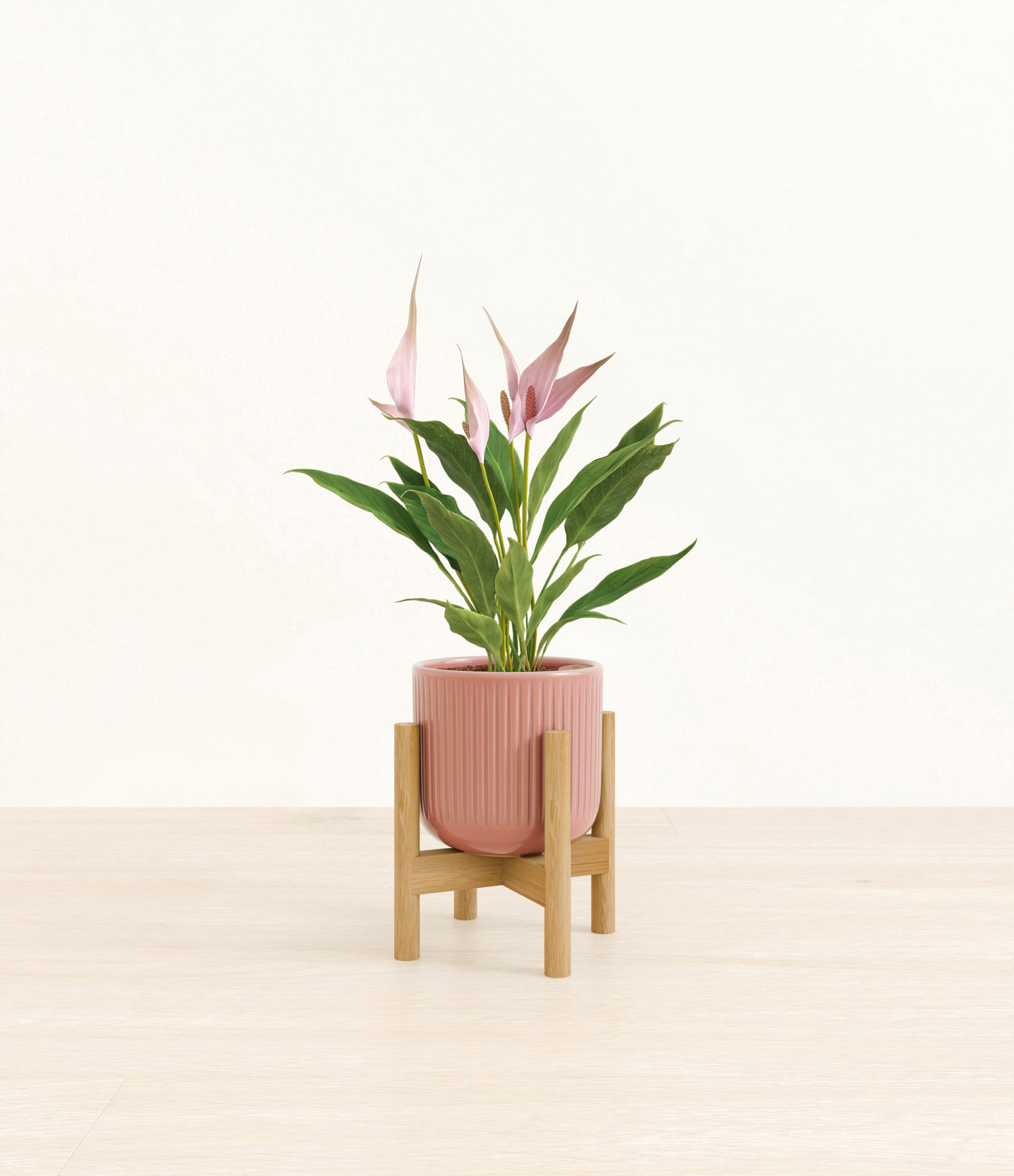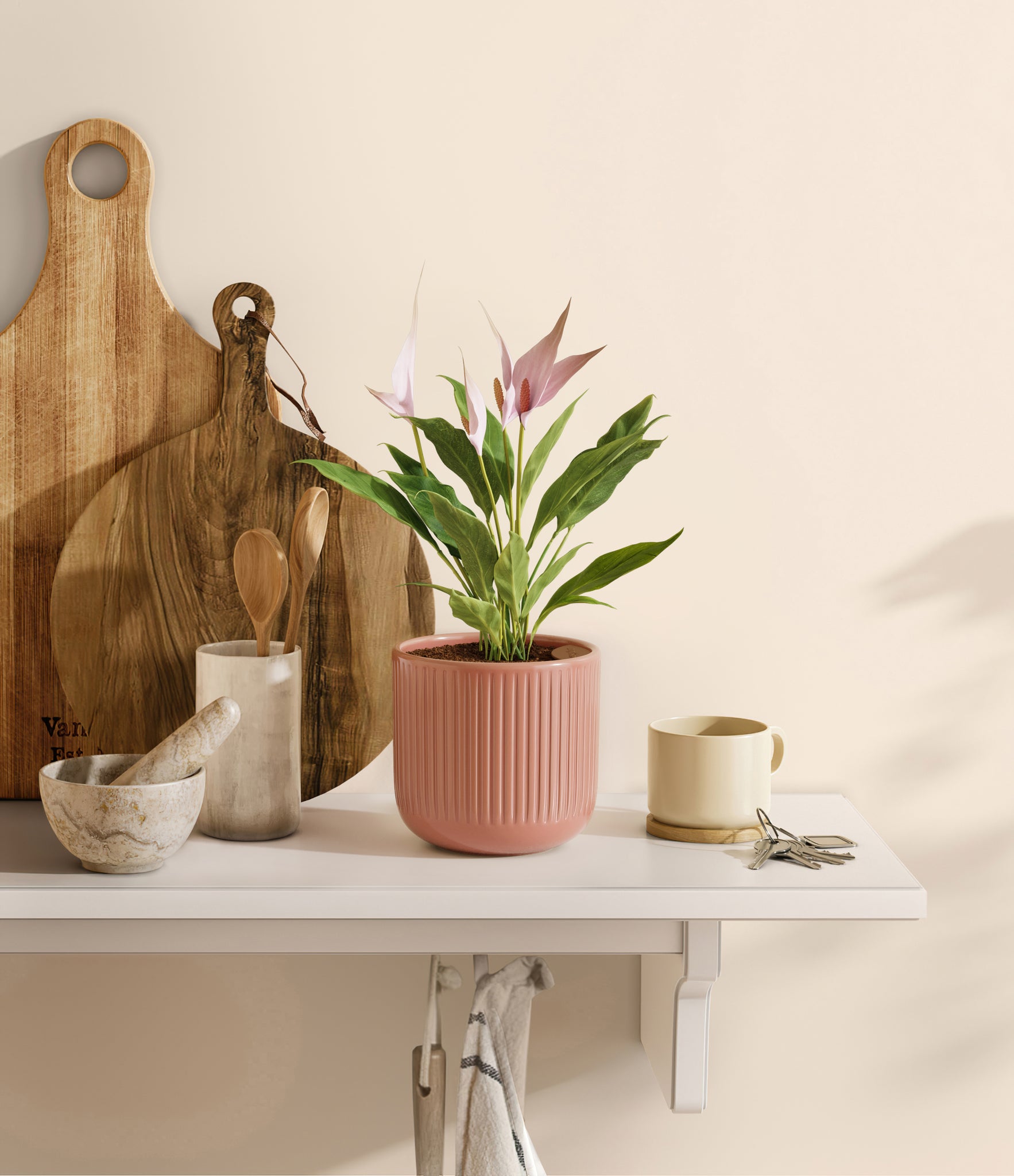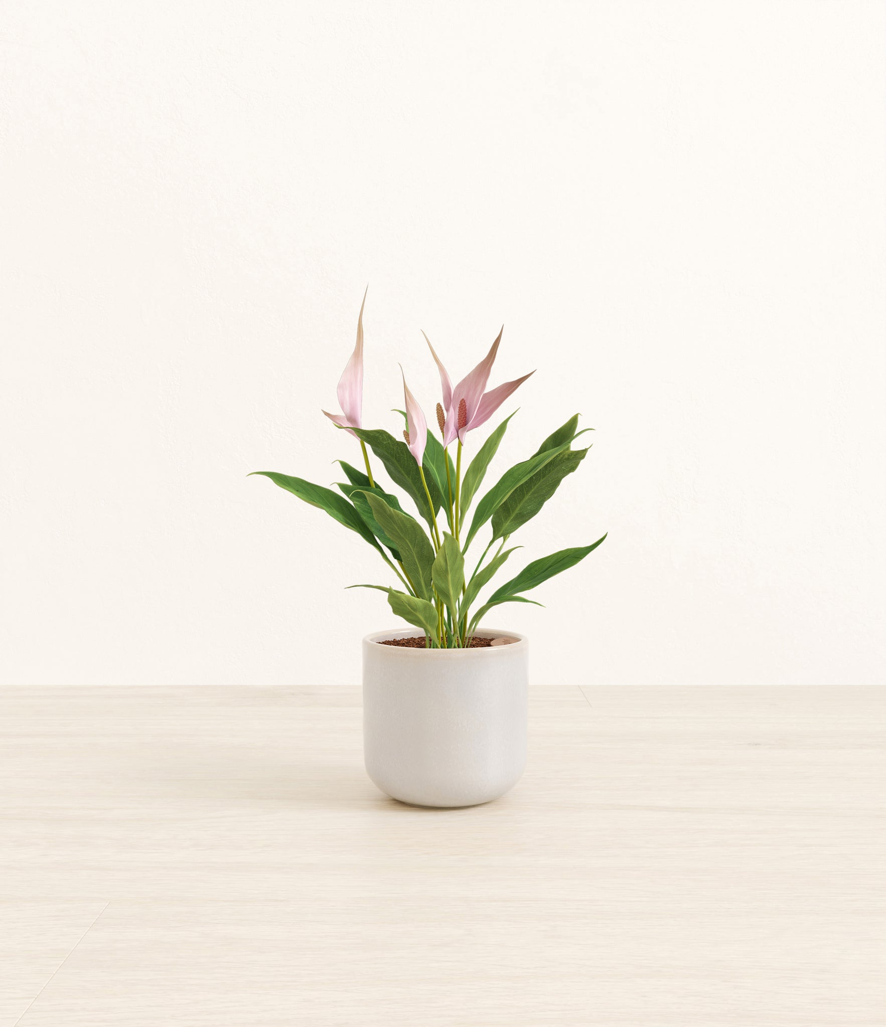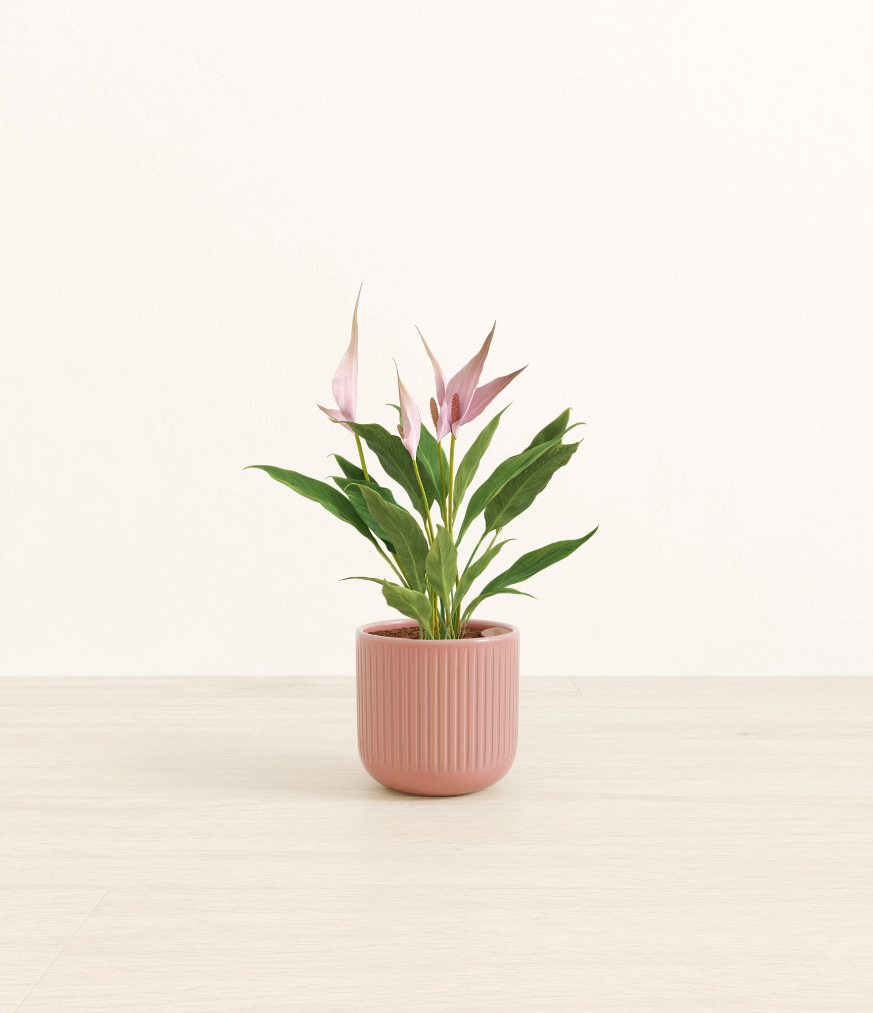 Originating from the lush rainforests of Central and South America, Anthurium Lilli captivates with its delicate pink spathes. This variety offers a softer, more understated appeal compared to its classic red cousins, with heart-shaped leaves that beautifully frame the central spadix, where the charming flowers bloom. The colour of the blooms may gently change over time, adding to the plant's natural grace. Symbolising warmth and affection, this plant embodies tenderness and appreciation. Known for its long-lasting blooms and natural beauty, it effortlessly elevates any collection with a touch of tropical elegance and enduring charm.