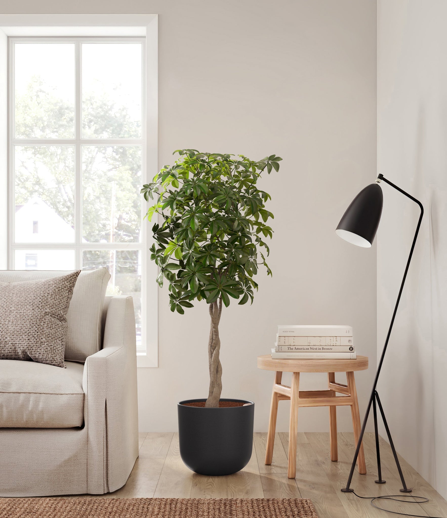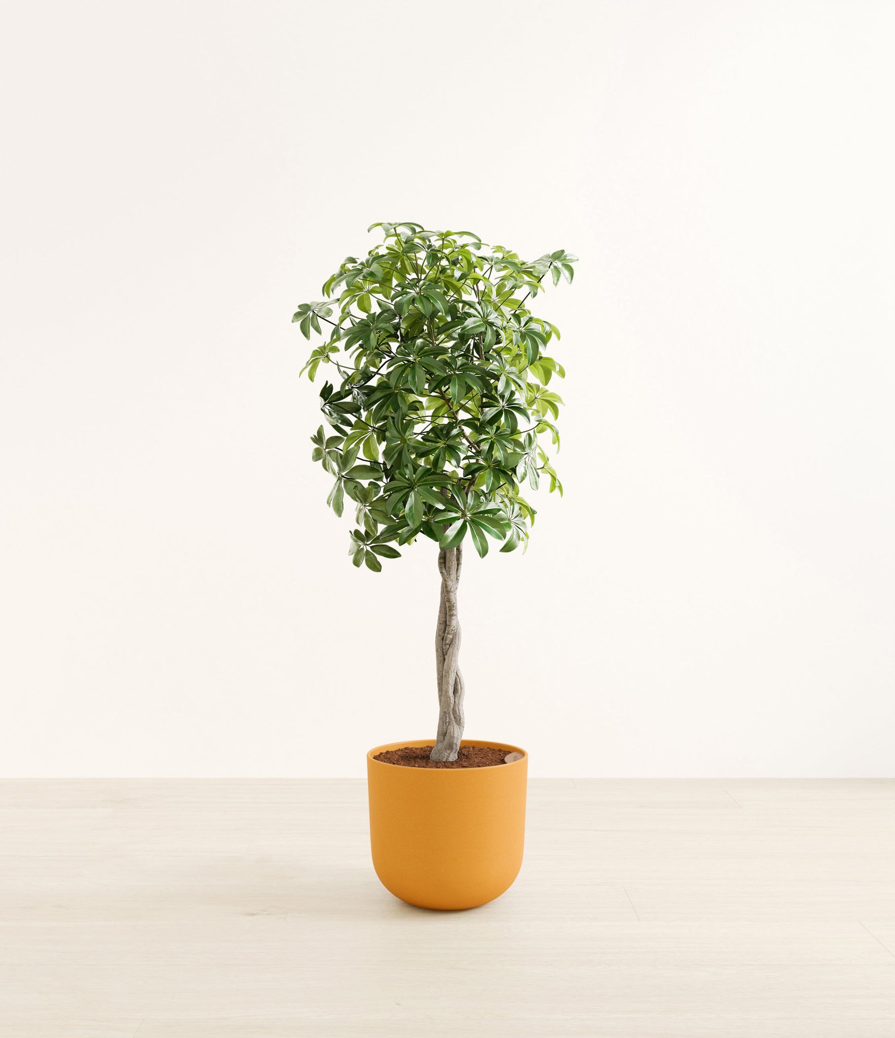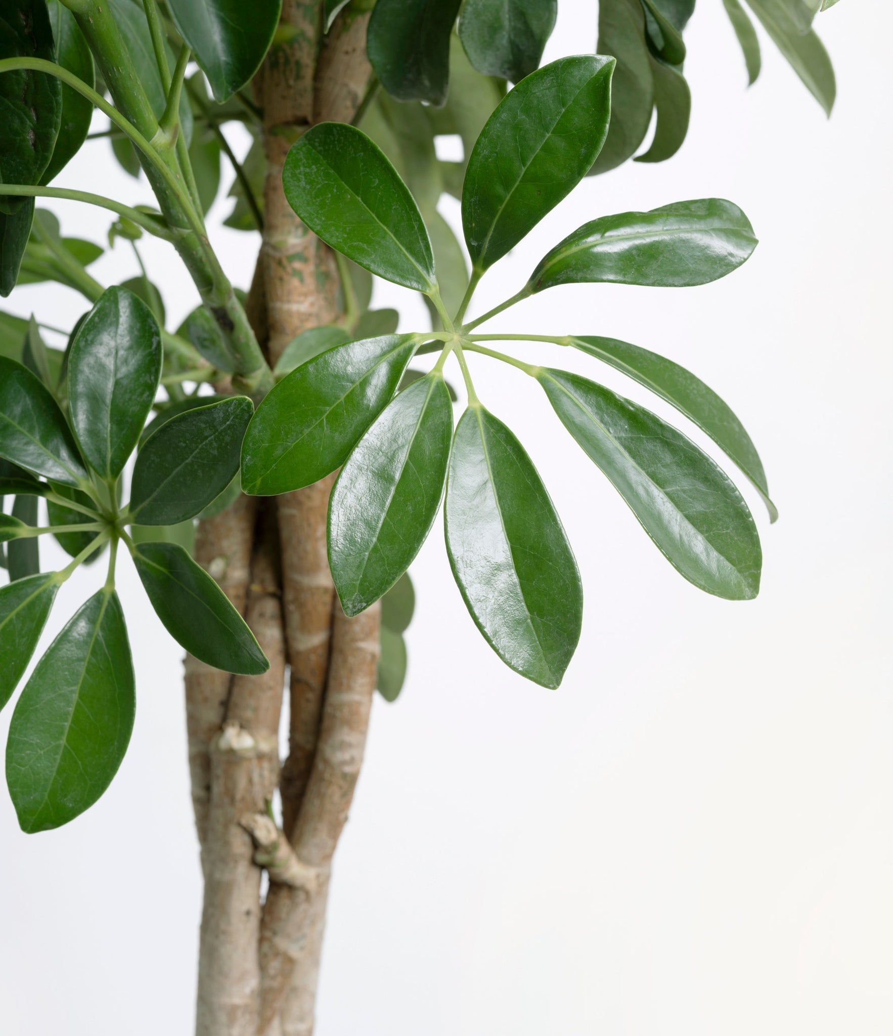 Schefflera Arboricola is a tropical wonder, and its resilience and ease of care make it a plant lover’s favourite. It displays clusters of striking green, oval-shaped leaflets that hang playfully to form little canopies, giving it the quirky nickname ‘Umbrella Tree’. Native to the subtropical forests of Asia and Australia, this evergreen shrub effortlessly brings the jungle indoors and brightens up any room.