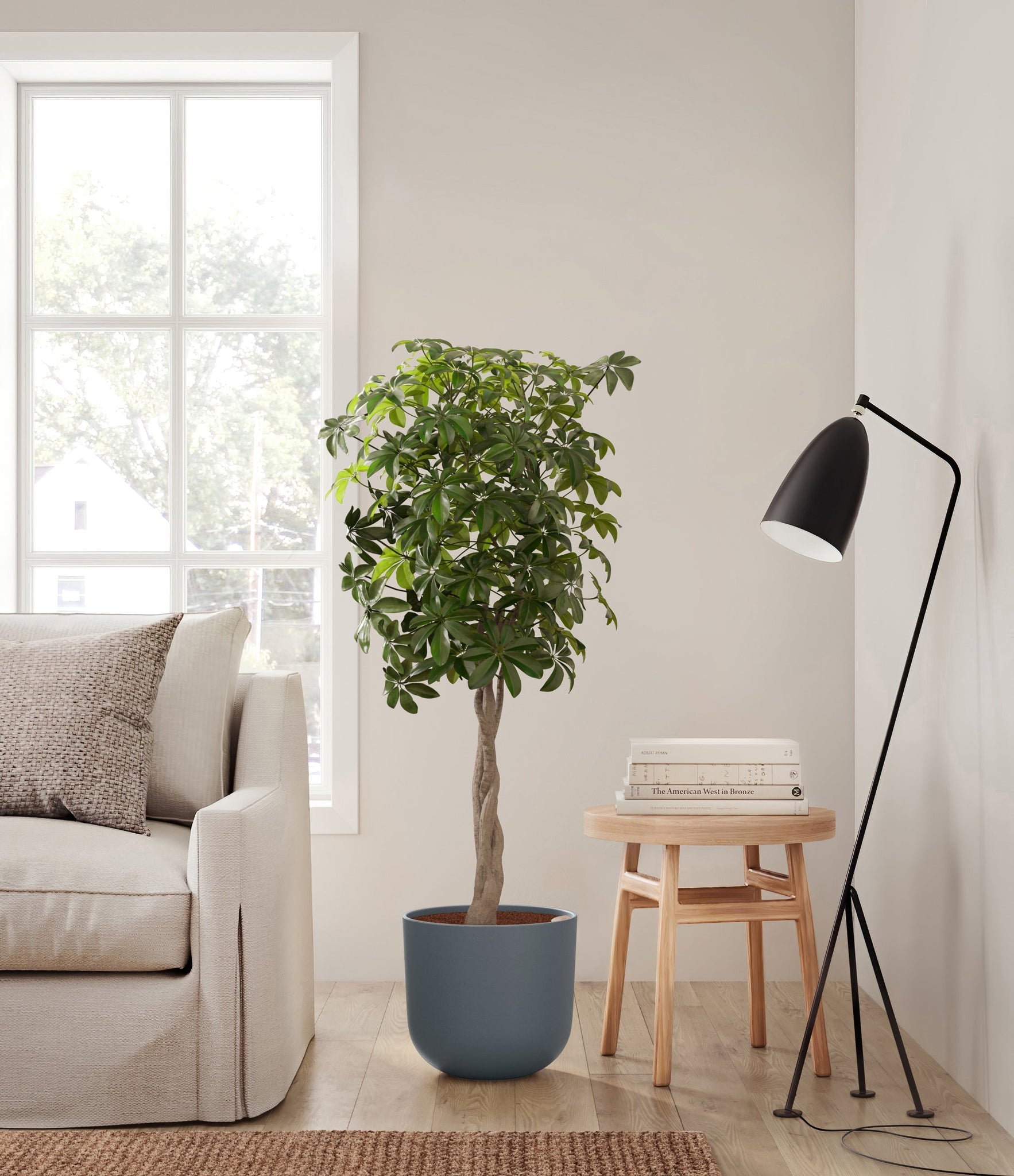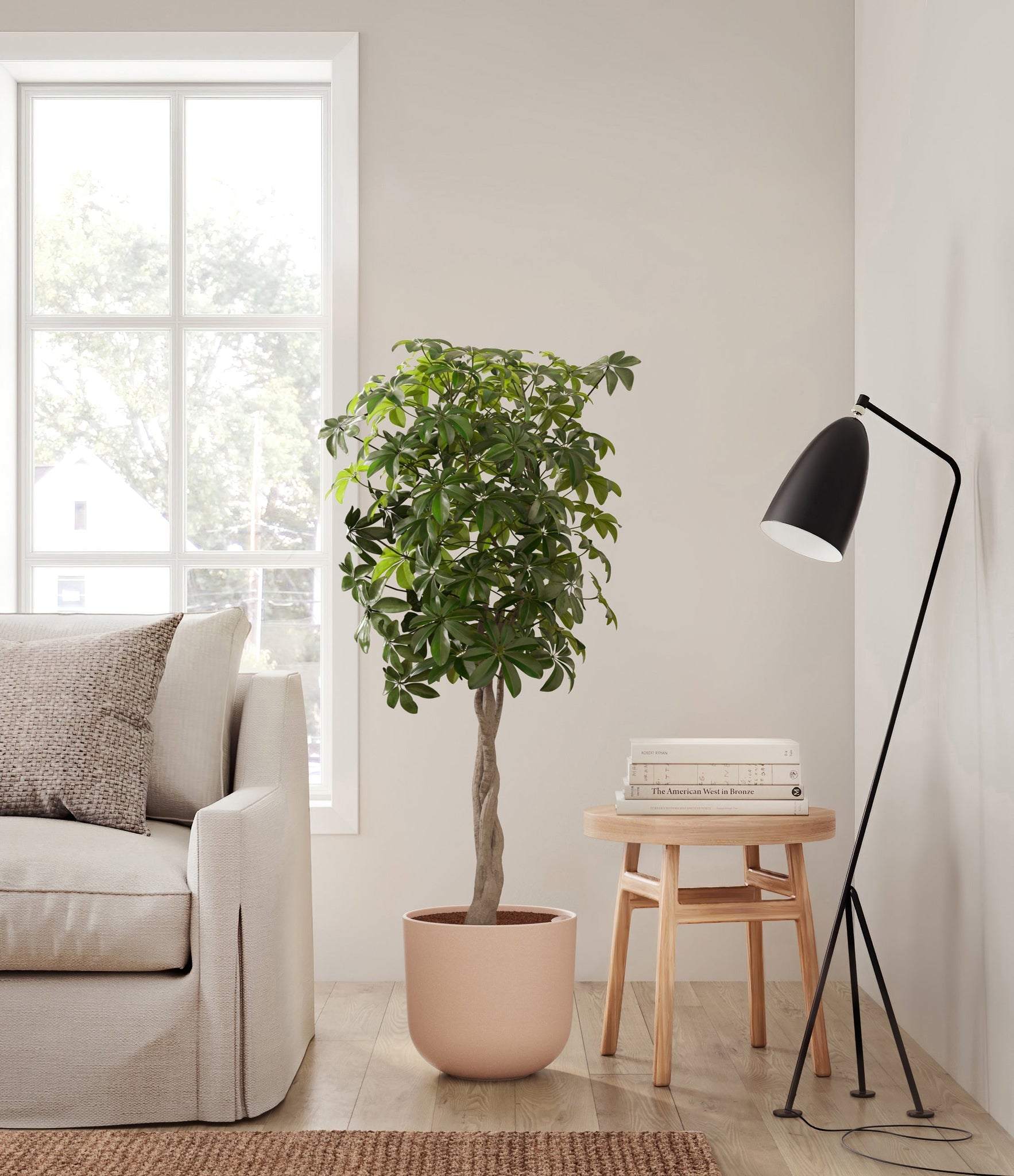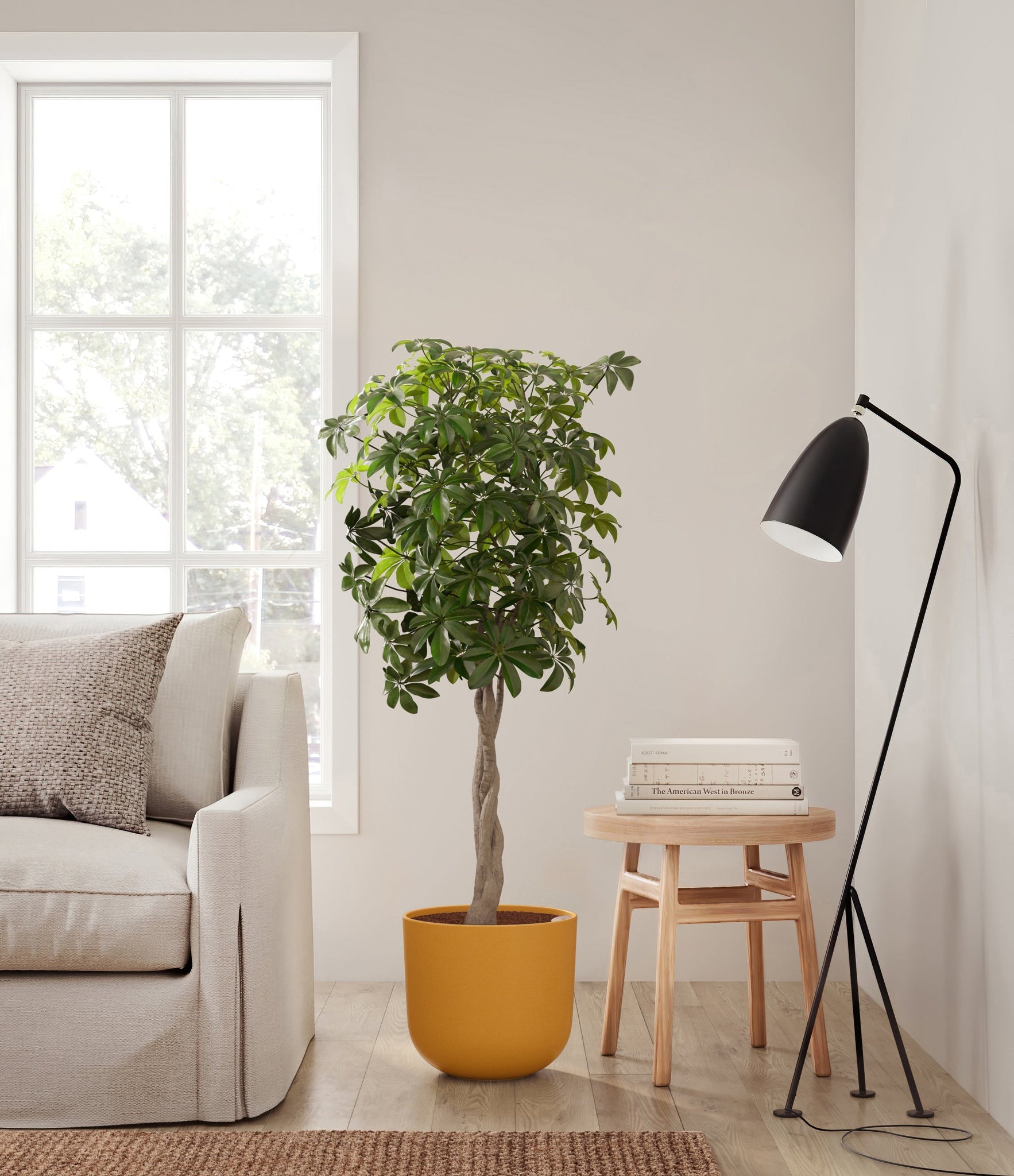 Schefflera Arboricola is a tropical wonder, and its resilience and ease of care make it a plant lover’s favourite. It displays clusters of striking green, oval-shaped leaflets that hang playfully to form little canopies, giving it the quirky nickname ‘Umbrella Tree’. Native to the subtropical forests of Asia and Australia, this evergreen shrub effortlessly brings the jungle indoors and brightens up any room.