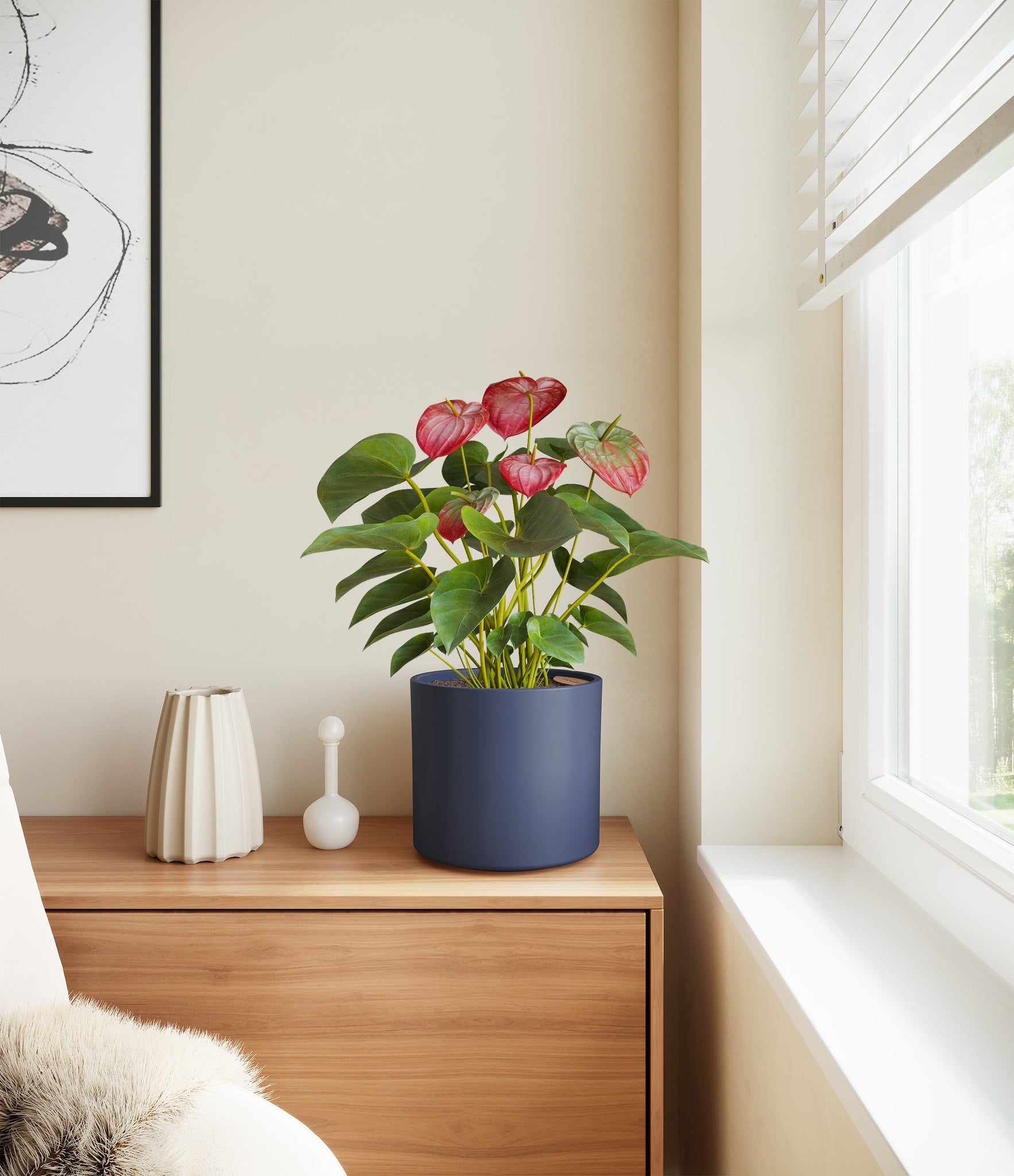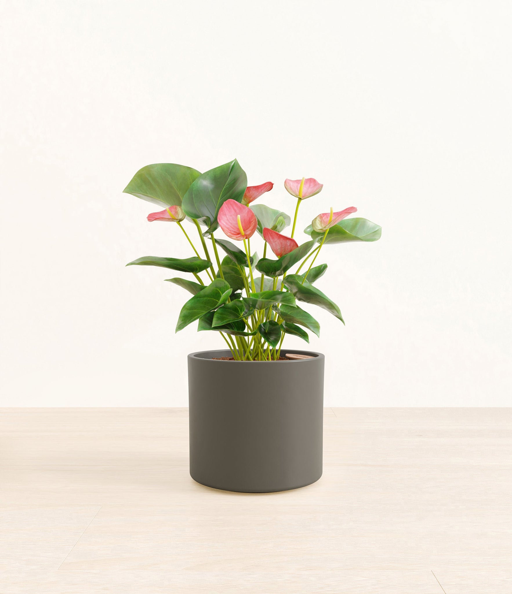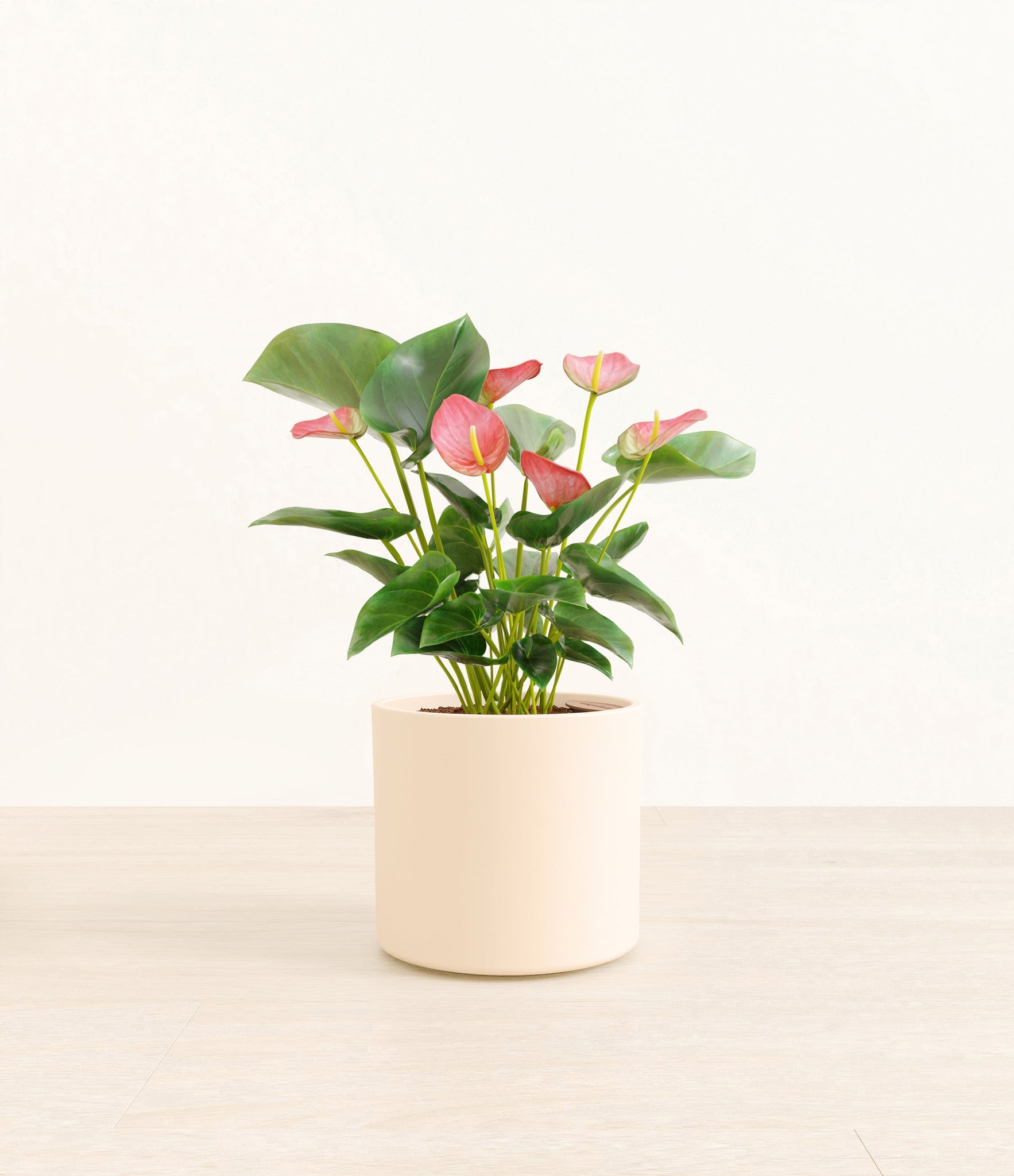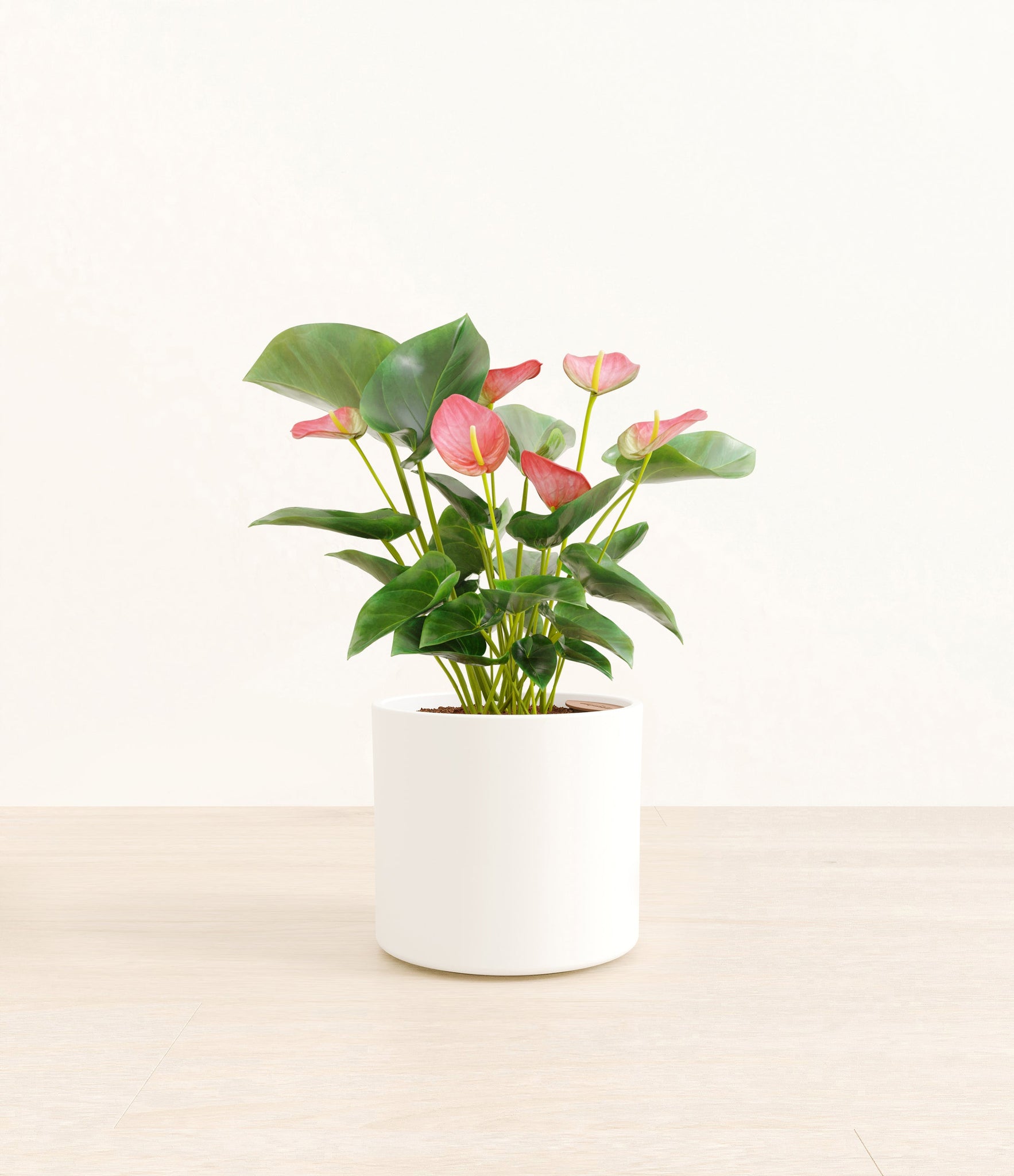 Native to the Americas and Caribbeans, this tropical evergreen beauty brings out the best and brightest in any space it inhabits. The colorful heart-shaped waxy leaves, called spathes, act as protectors for its straight spike, called spadix, where very small flowers grow in its bloom. As the plant matures, bloom colors may naturally vary or evolve, reflecting its dynamic beauty. Thanks to its long-lived, heart-opening charm, Anthurium is the quintessential symbol of generosity and kindness, making it a perfect gift for those you love the most. It is cherished for its long blooms, lasting anywhere from eight to twelve weeks.