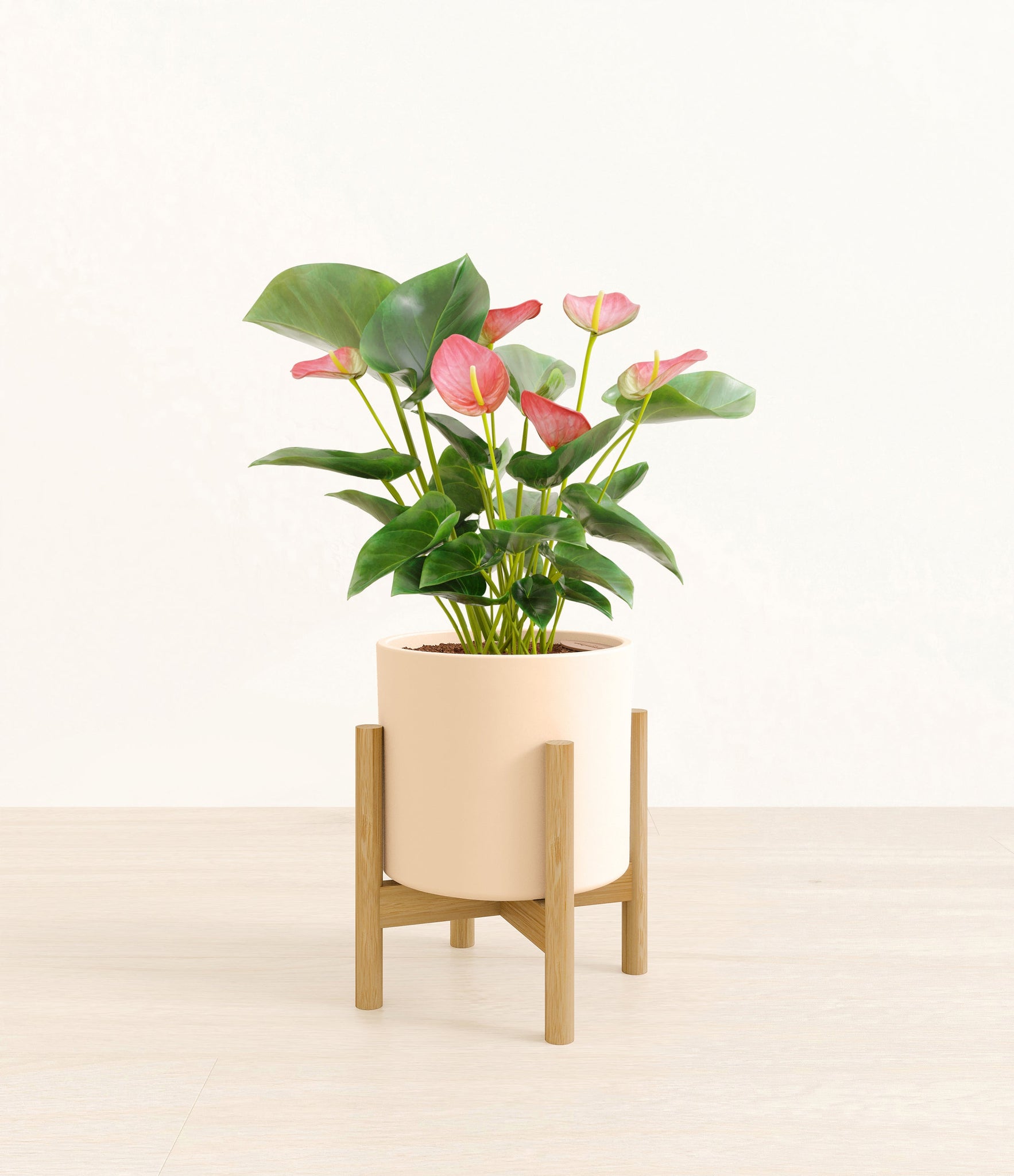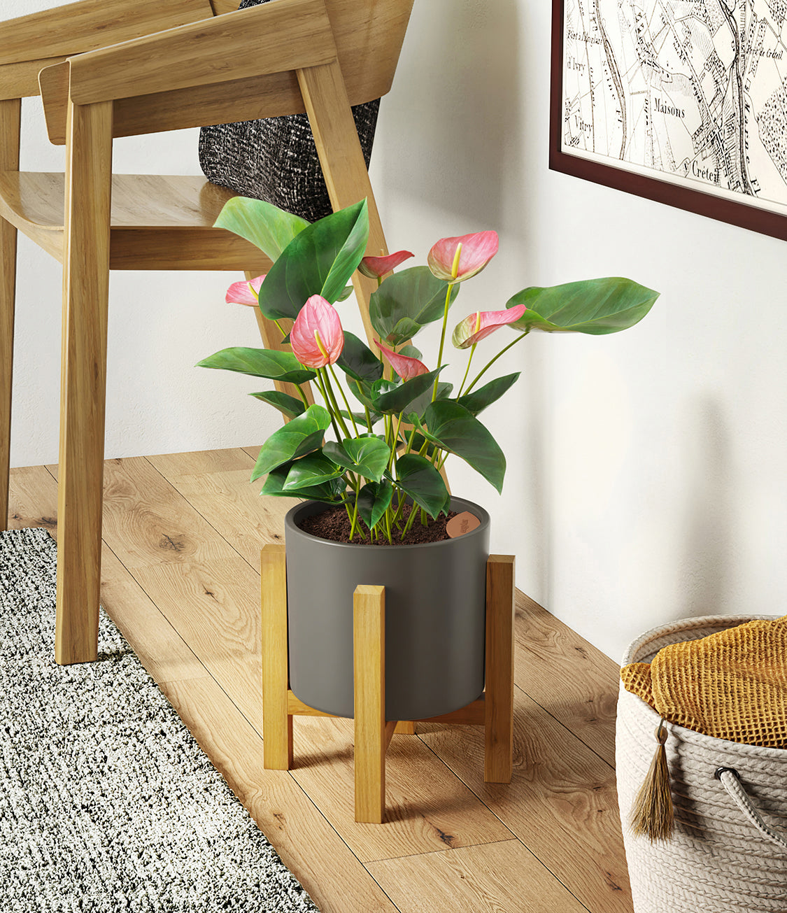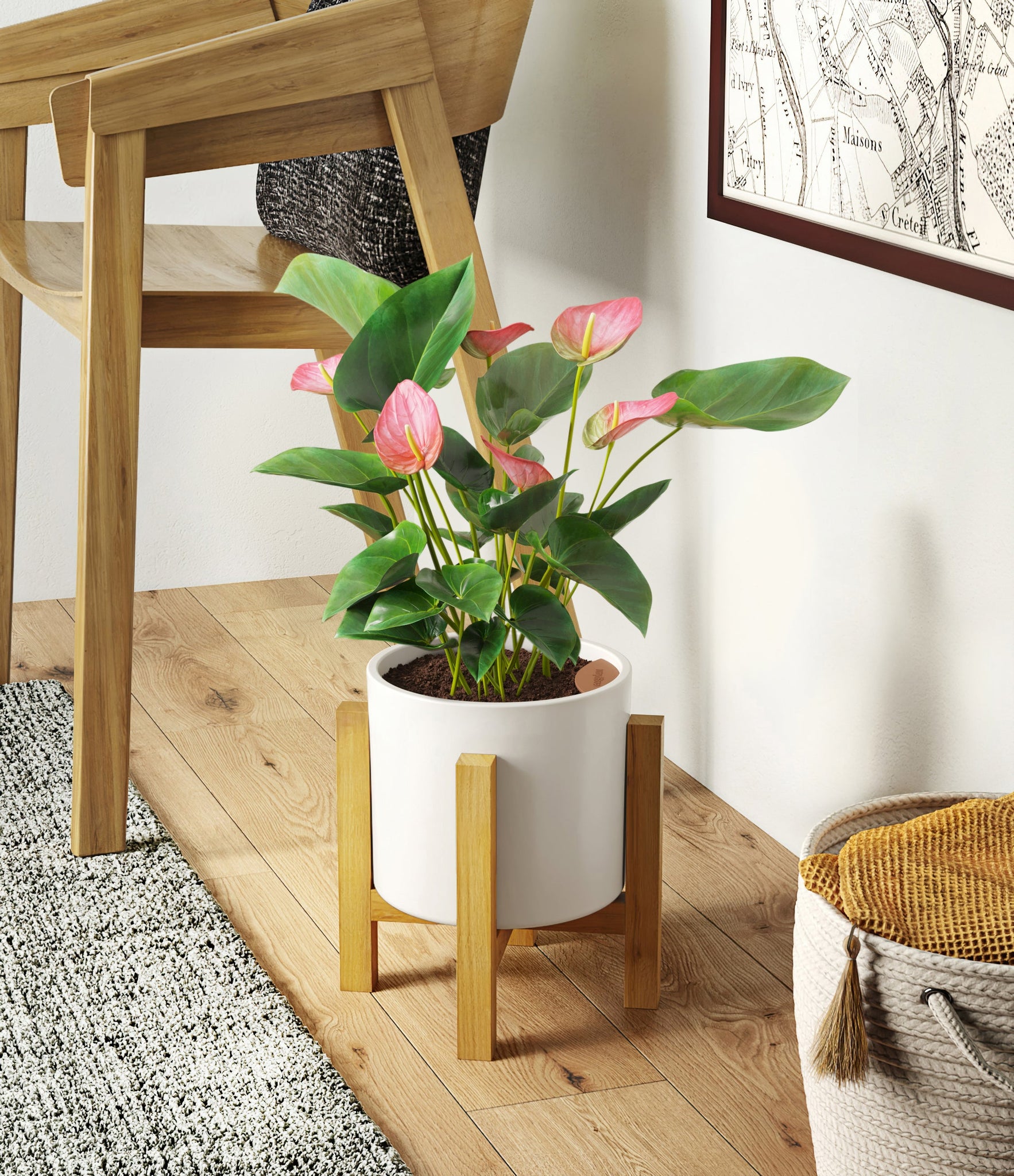 Native to the Americas and Caribbeans, this tropical evergreen beauty brings out the best and brightest in any space it inhabits. The colorful heart-shaped waxy leaves, called spathes, act as protectors for its straight spike, called spadix, where very small flowers grow in its bloom. As the plant matures, bloom colors may naturally vary or evolve, reflecting its dynamic beauty. Thanks to its long-lived, heart-opening charm, Anthurium is the quintessential symbol of generosity and kindness, making it a perfect gift for those you love the most. It is cherished for its long blooms, lasting anywhere from eight to twelve weeks.