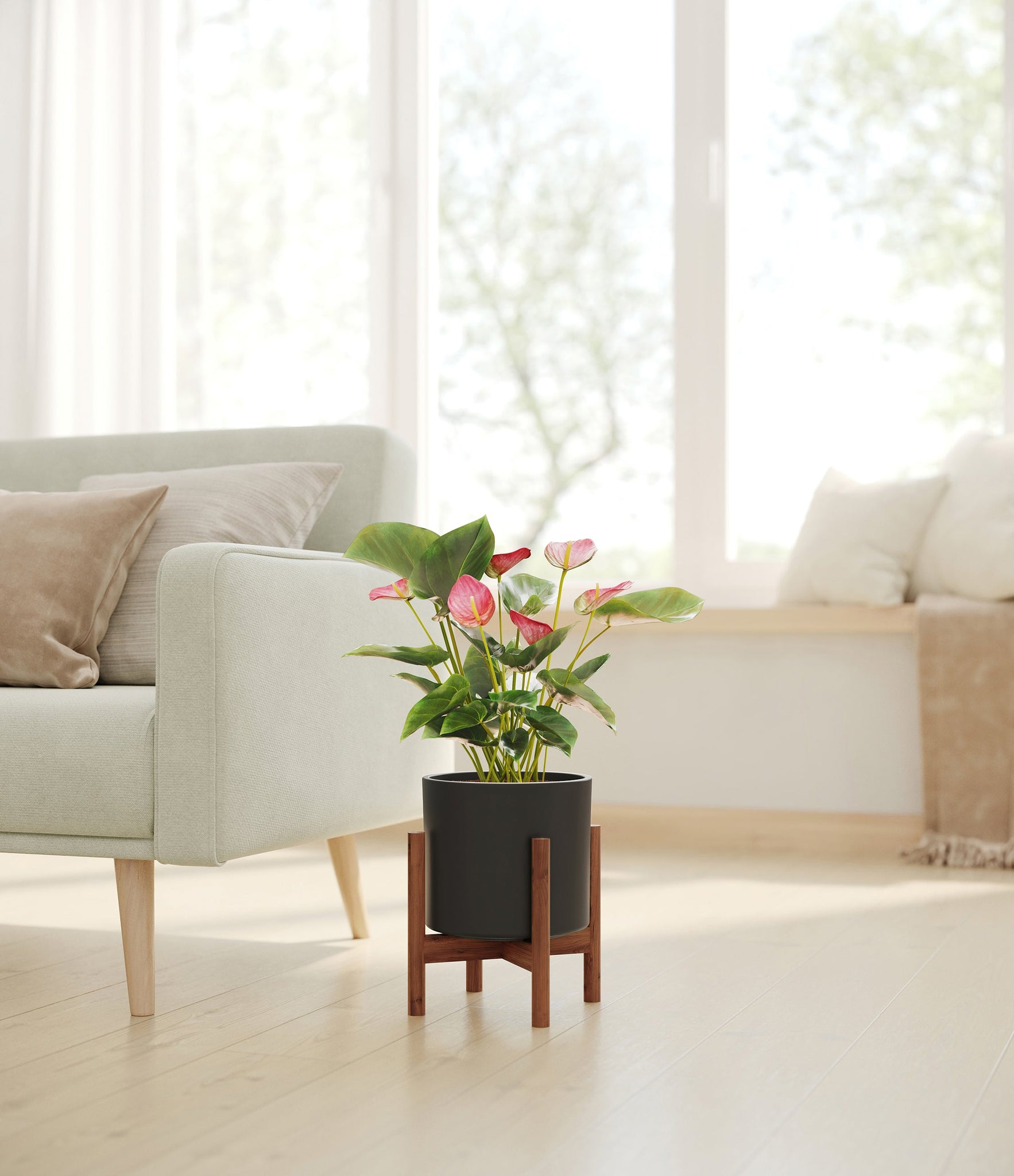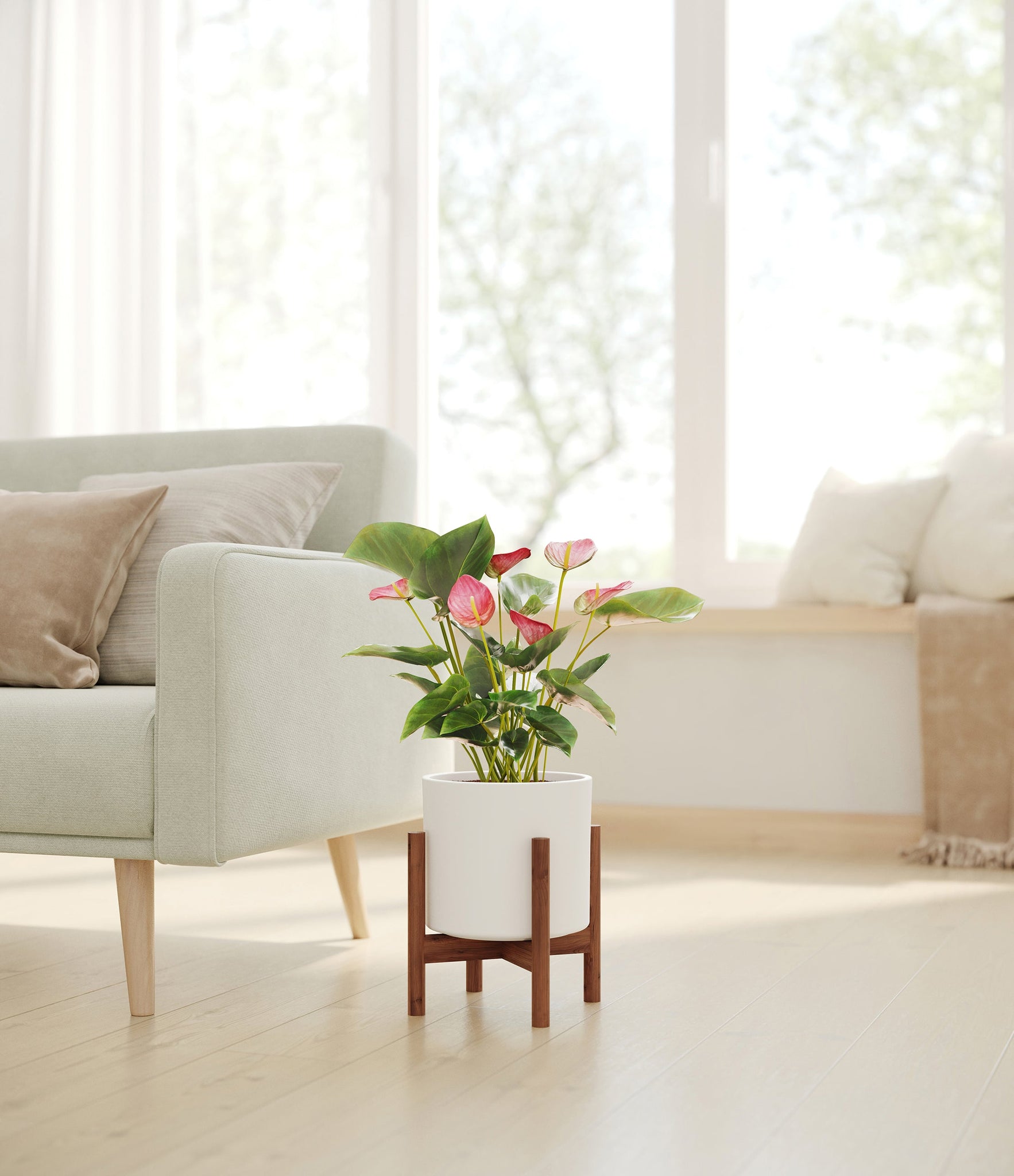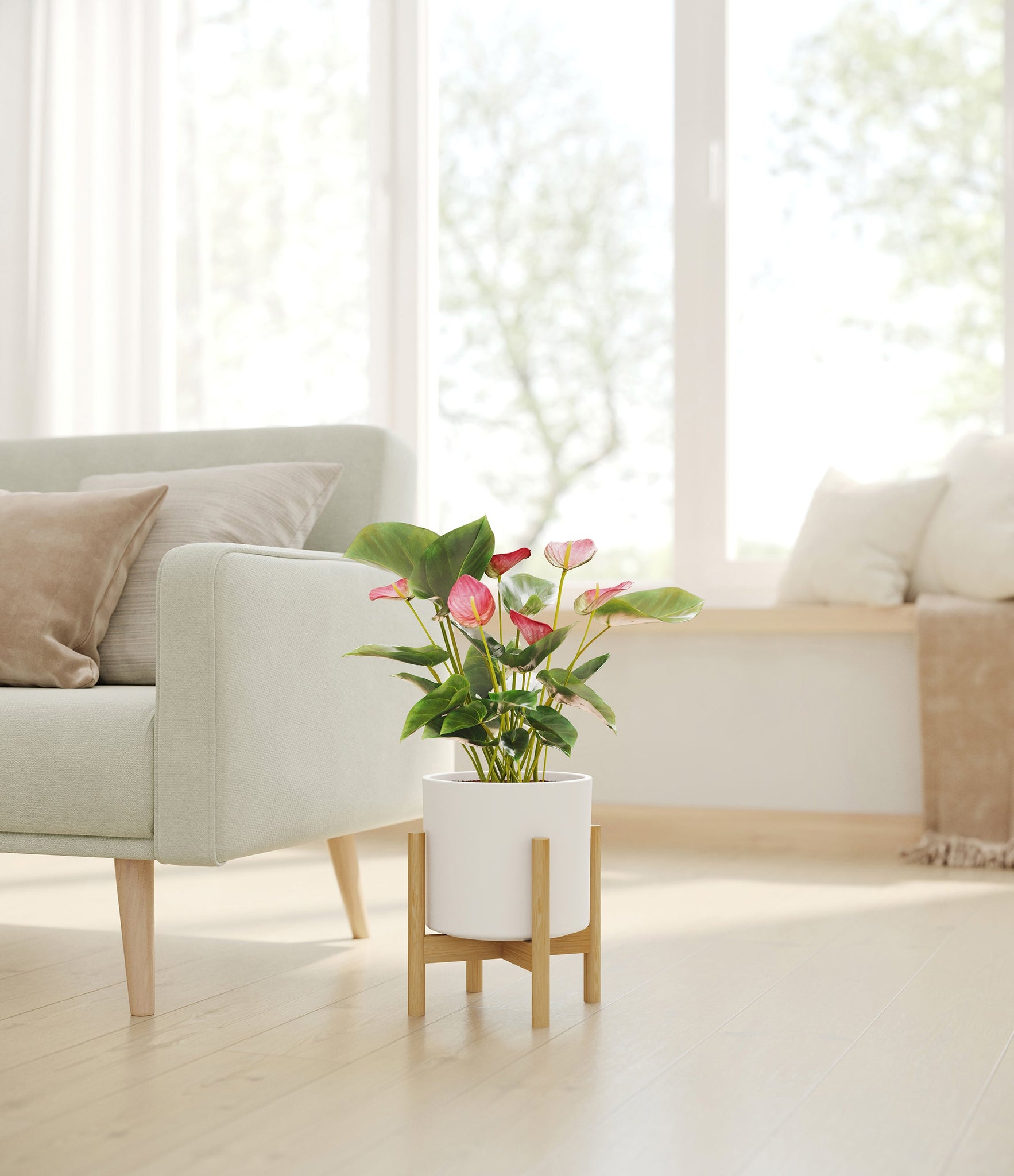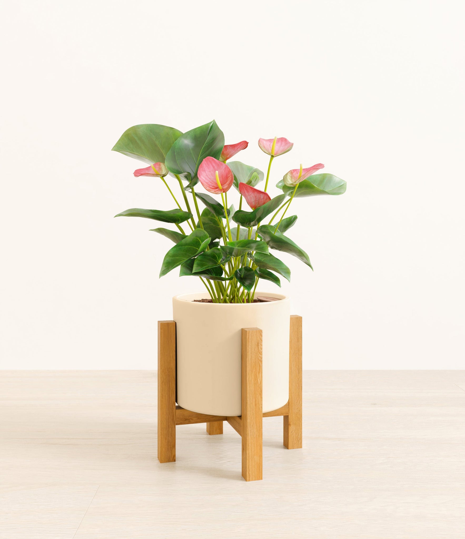 Native to the Americas and Caribbeans, this tropical evergreen beauty brings out the best and brightest in any space it inhabits. The colorful heart-shaped waxy leaves, called spathes, act as protectors for its straight spike, called spadix, where very small flowers grow in its bloom. As the plant matures, bloom colors may naturally vary or evolve, reflecting its dynamic beauty. Thanks to its long-lived, heart-opening charm, Anthurium is the quintessential symbol of generosity and kindness, making it a perfect gift for those you love the most. It is cherished for its long blooms, lasting anywhere from eight to twelve weeks.