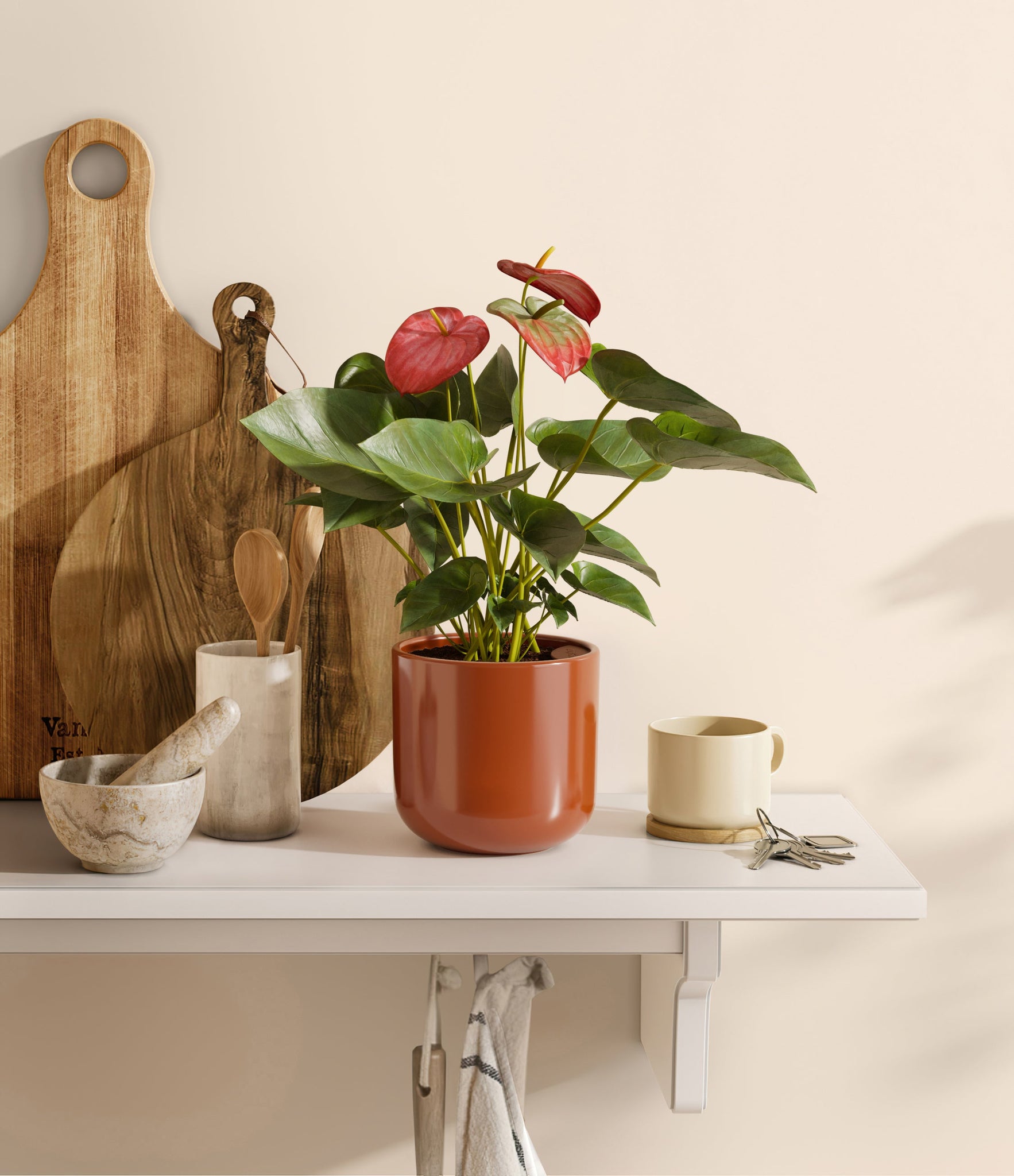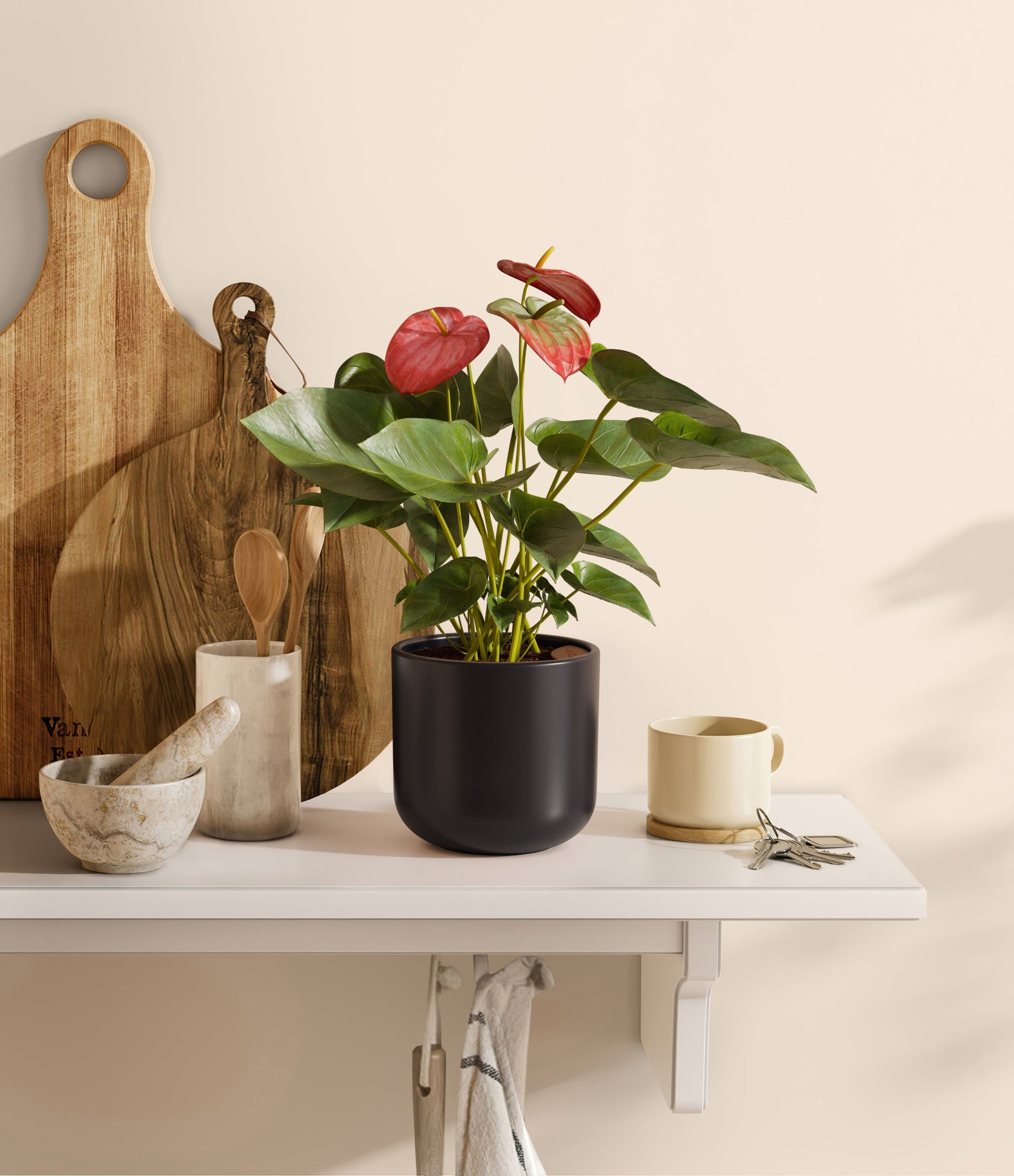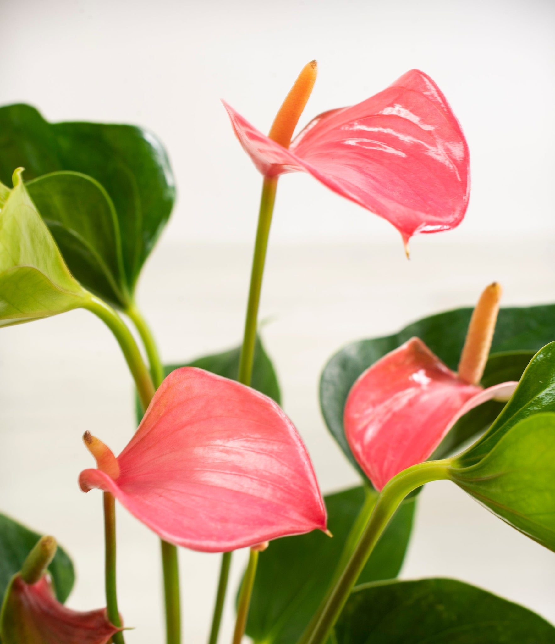 Native to the Americas and Caribbeans, this tropical evergreen beauty brings out the best and brightest in any space it inhabits. The colorful heart-shaped waxy leaves, called spathes, act as protectors for its straight spike, called spadix, where very small flowers grow in its bloom. As the plant matures, bloom colors may naturally vary or evolve, reflecting its dynamic beauty. Thanks to its long-lived, heart-opening charm, Anthurium is the quintessential symbol of generosity and kindness, making it a perfect gift for those you love the most. It is cherished for its long blooms, lasting anywhere from eight to twelve weeks.