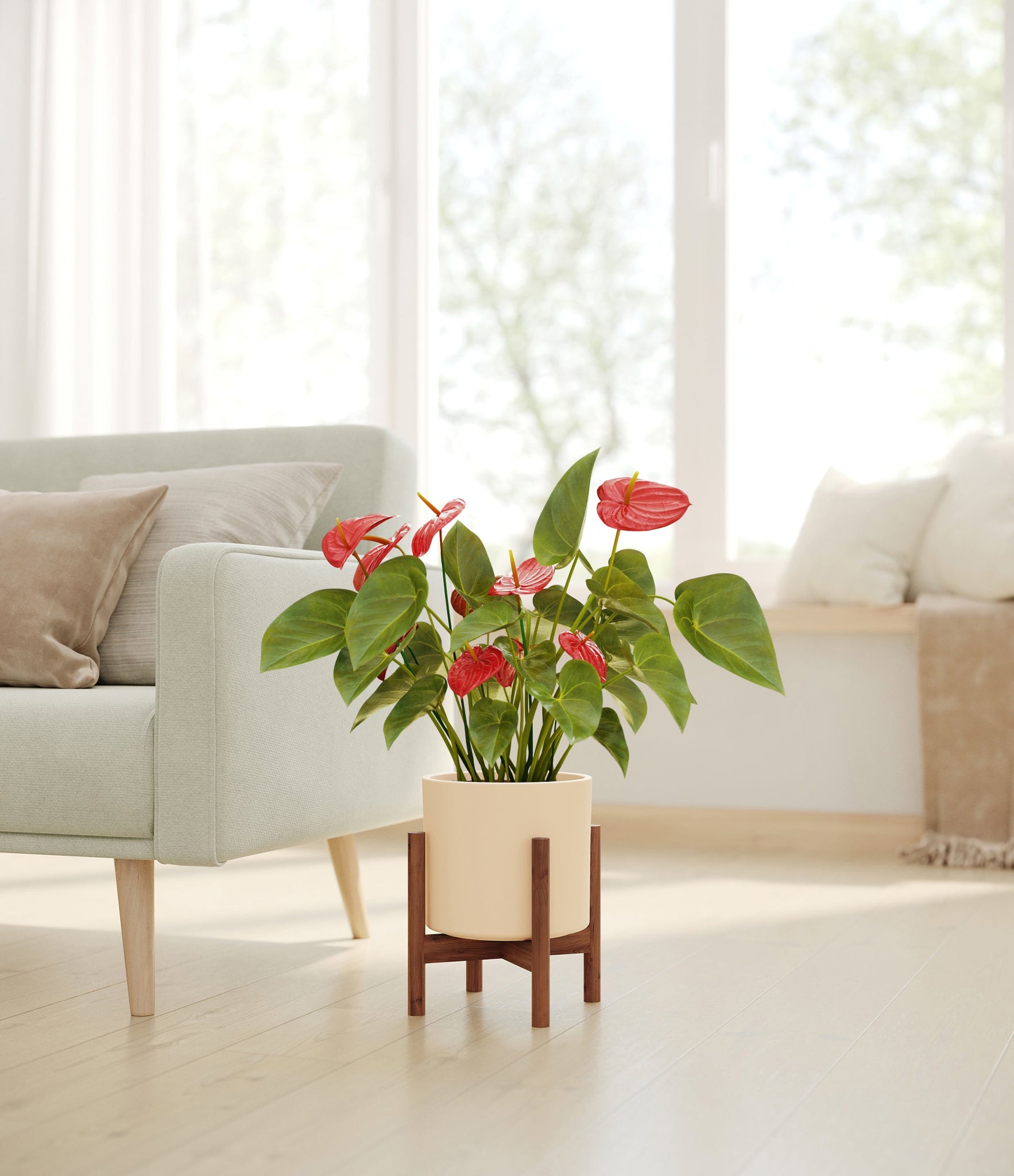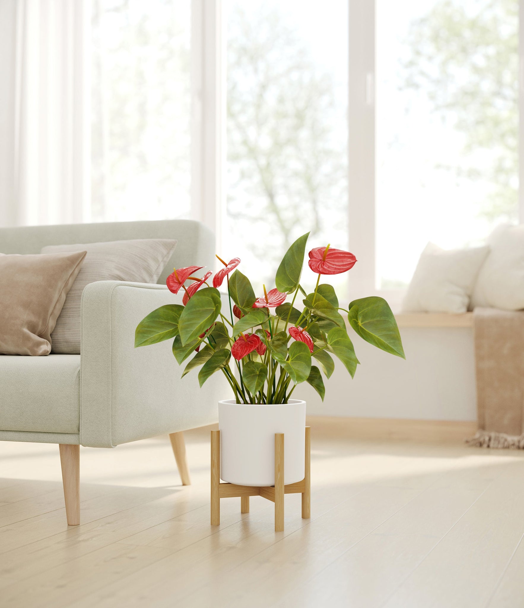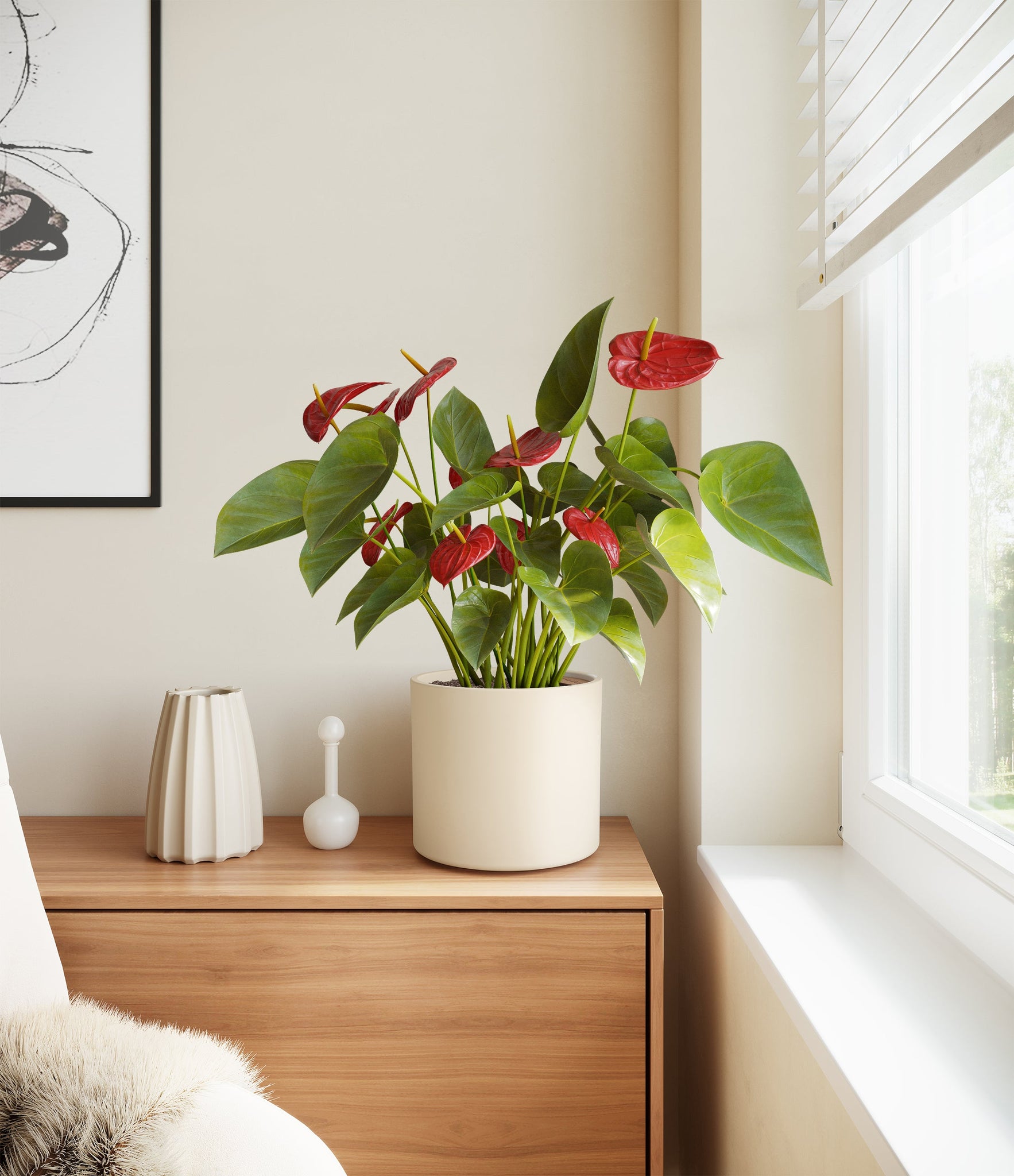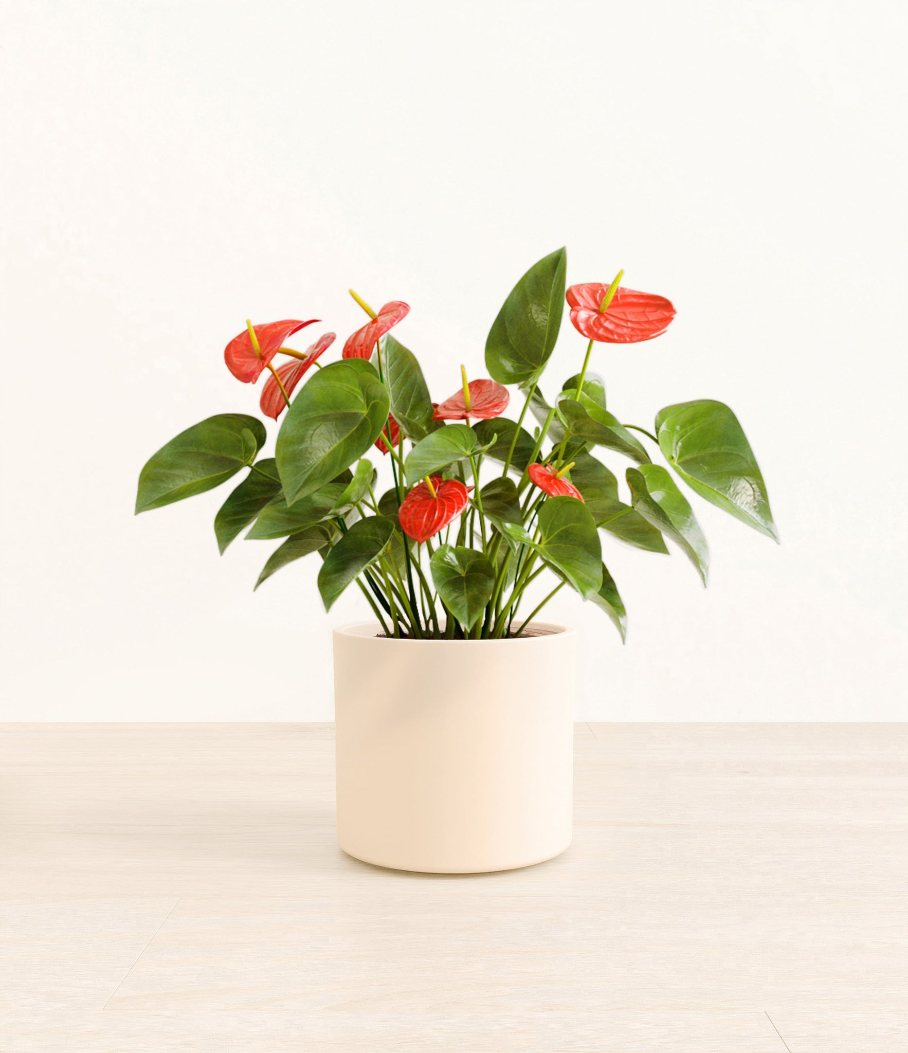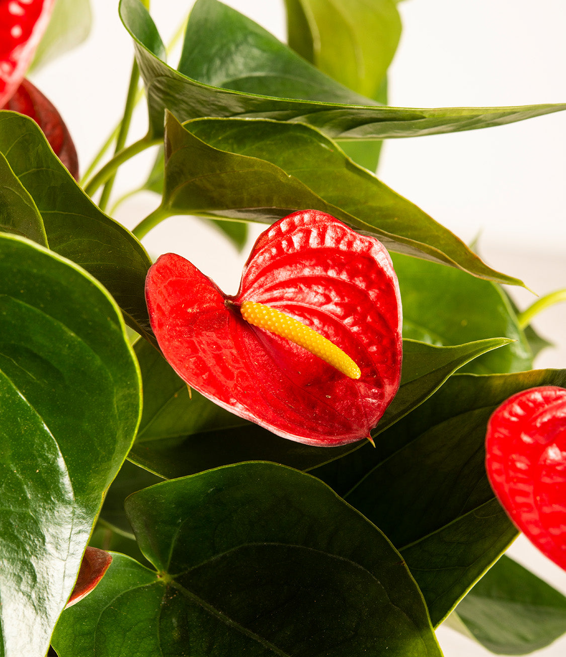 Native to the Americas and the Caribbean, the Anthurium is a striking tropical evergreen that adds vibrancy to any space. Its colourful, heart-shaped waxy leaves, called spathes, act as protectors for its straight spike, called spadix, where small flowers bloom. Known for its long-lasting appeal, with blooms that can last anywhere from eight to twelve weeks, the Anthurium is a symbol of generosity and kindness. It’s a thoughtful gift that continues to impress, making it a perfect choice for someone special.