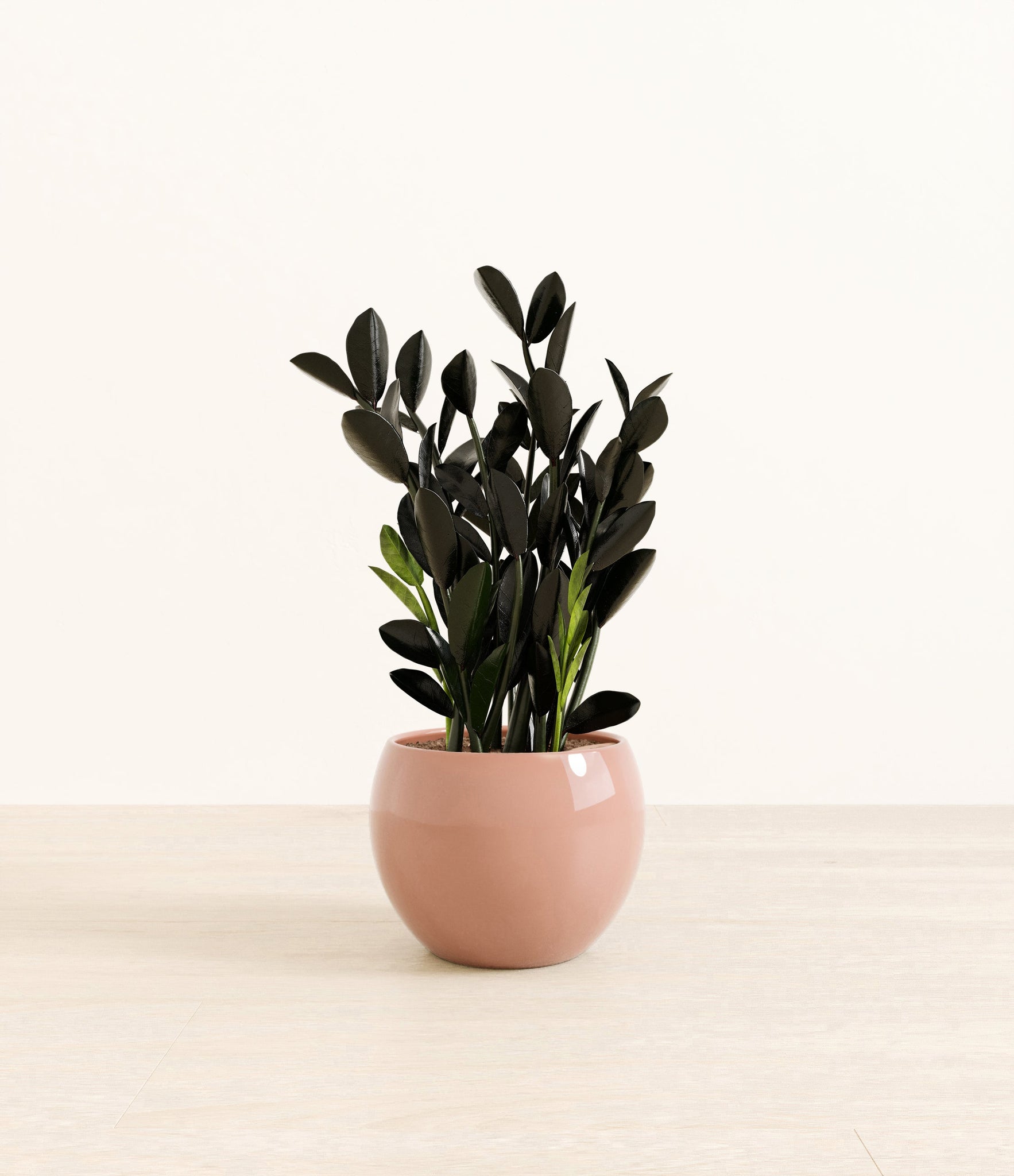 Originating from the arid regions of Eastern Africa, the Black ZZ plant, also known as the Raven ZZ Plant, boasts leaves with a mesmerising shade of emerald-black. This enigmatic beauty is not only a symbol of elegance and sophistication, but is also celebrated for its uncanny ability to infuse spaces with a sense of tranquillity and mystery. Its robust nature and adaptability to various conditions make it a beloved choice, captivating the hearts of both seasoned plant aficionados and those just beginning their botanical journey.