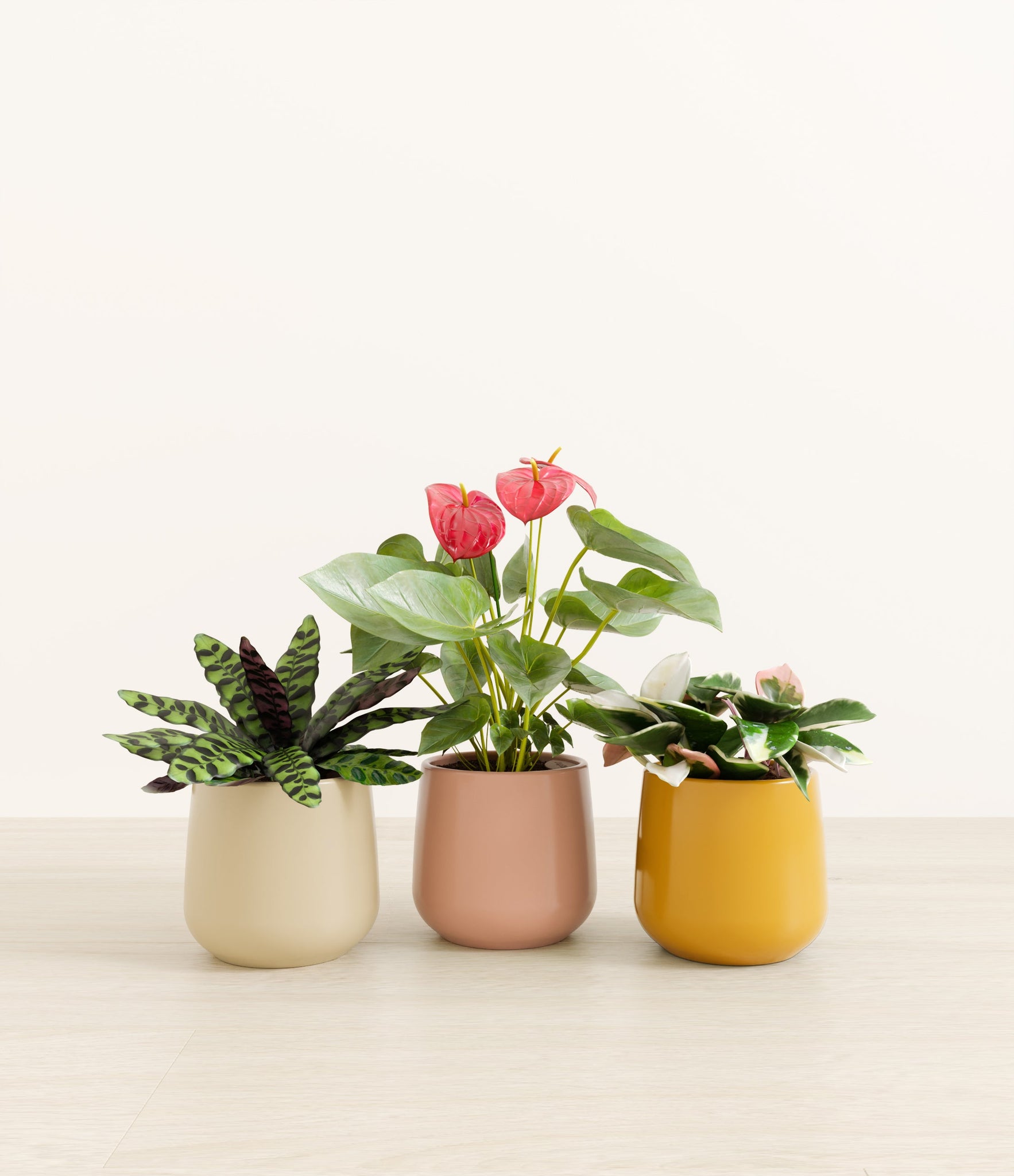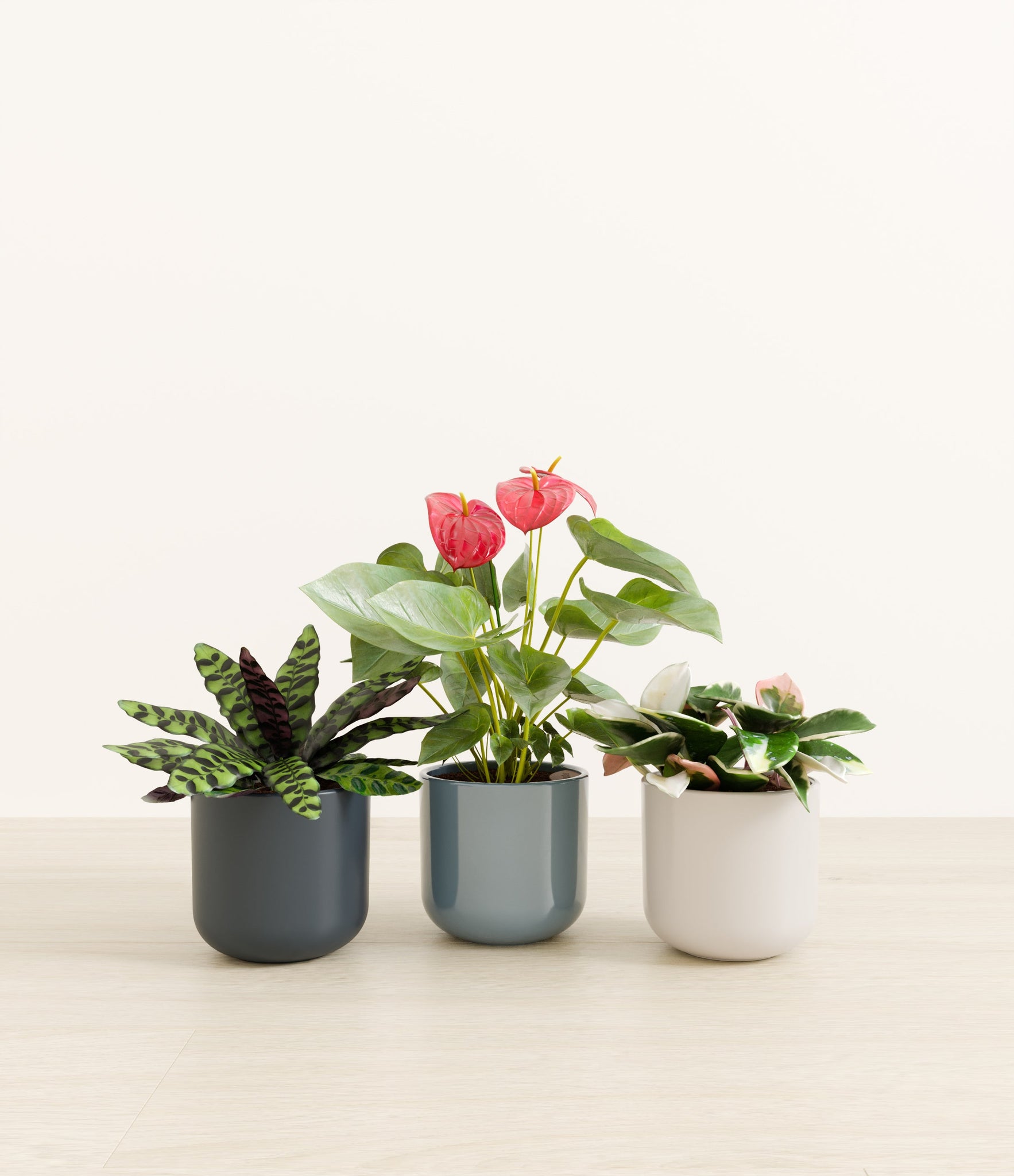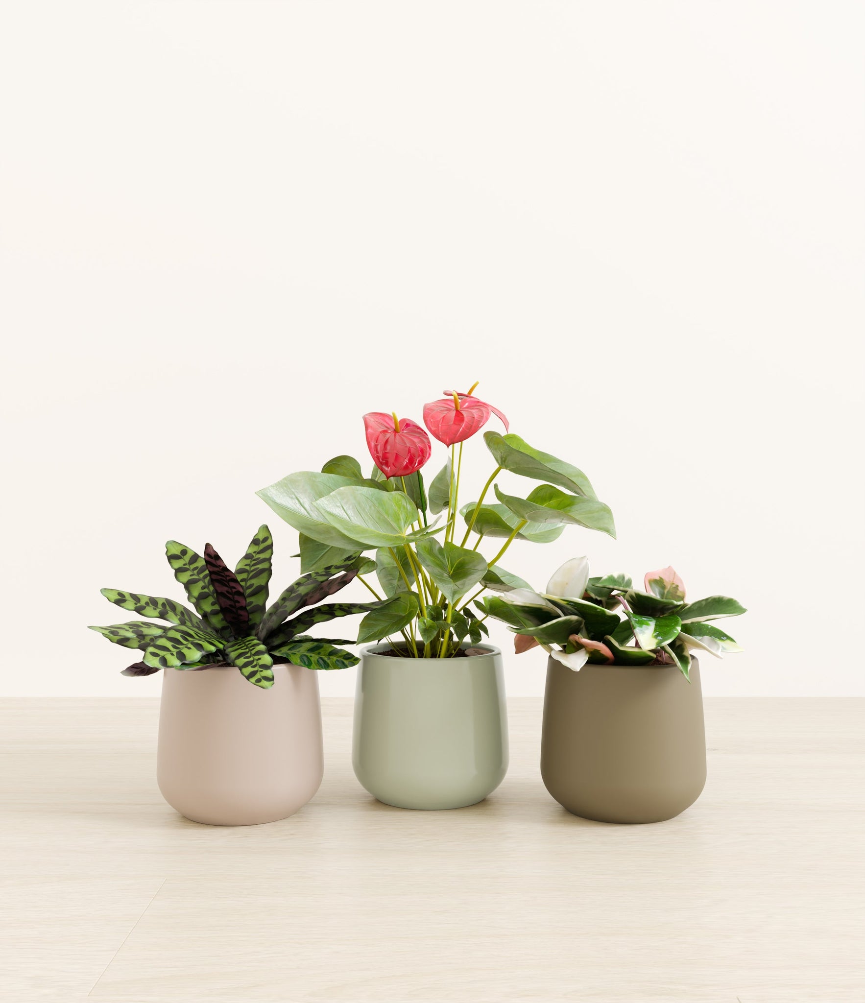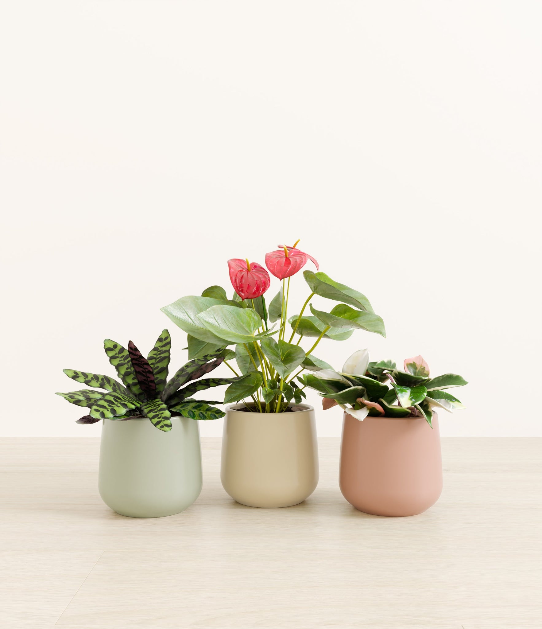 *****Celebrate the spirit of Christmas with a trio that captures the joy and warmth of the season. The small Anthurium Red shines with its festive, heart shaped blooms, symbolising love and generosity. The small Calathea Lancifolia brings playful texture with its patterned leaves and deep plum underside. Completing the trio, the small Hoya Tri Colour trails elegantly with waxy foliage variegated in soft pink, white, and green. Together, they create a radiant display of colour and charm, perfect for brightening your home or gifting to someone special.