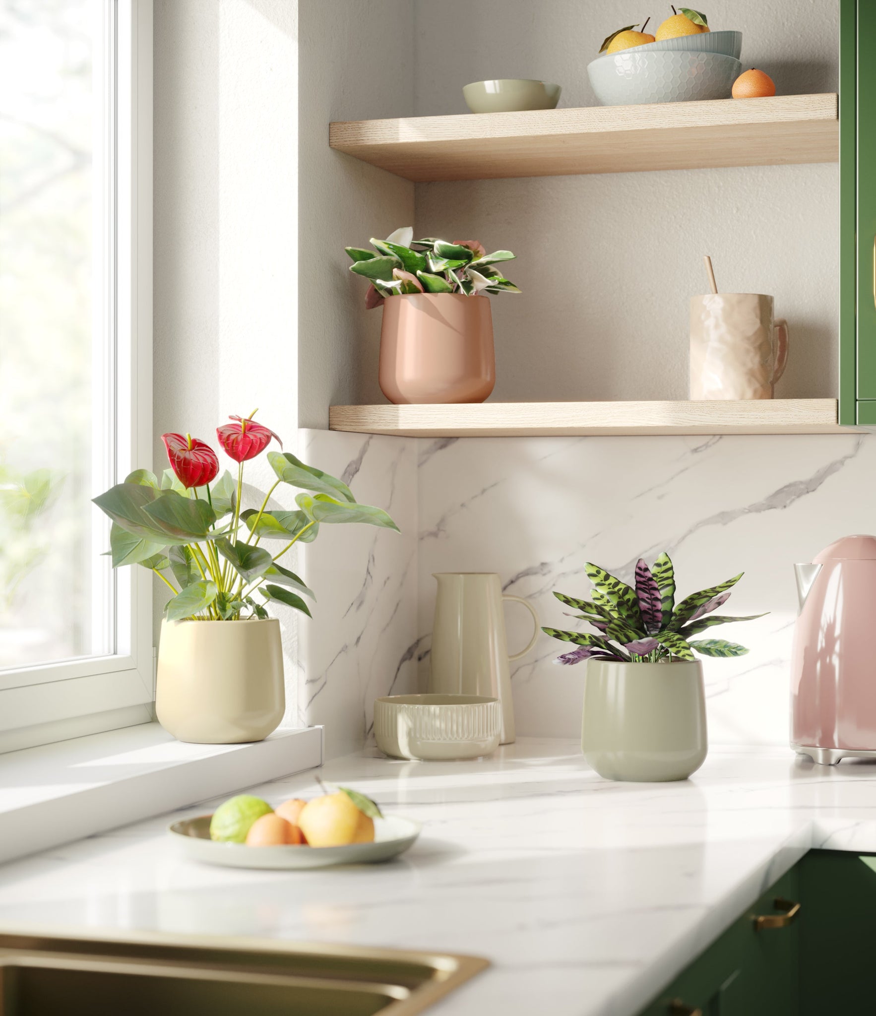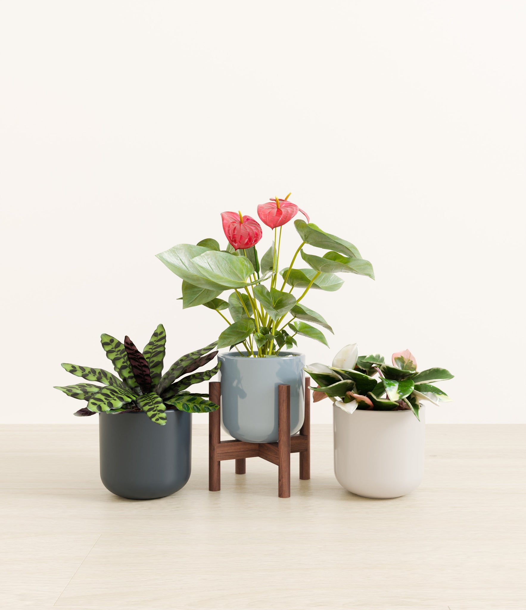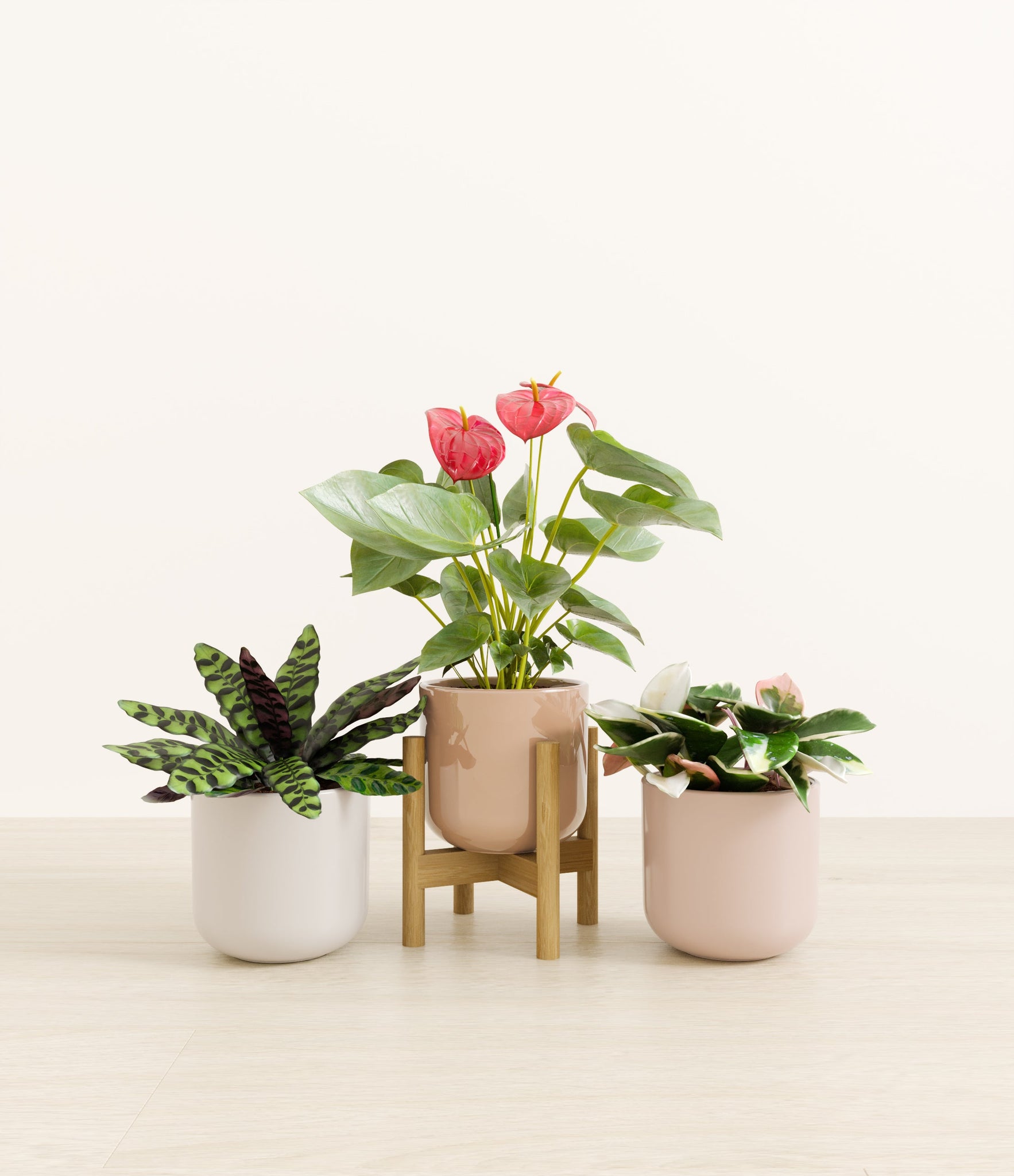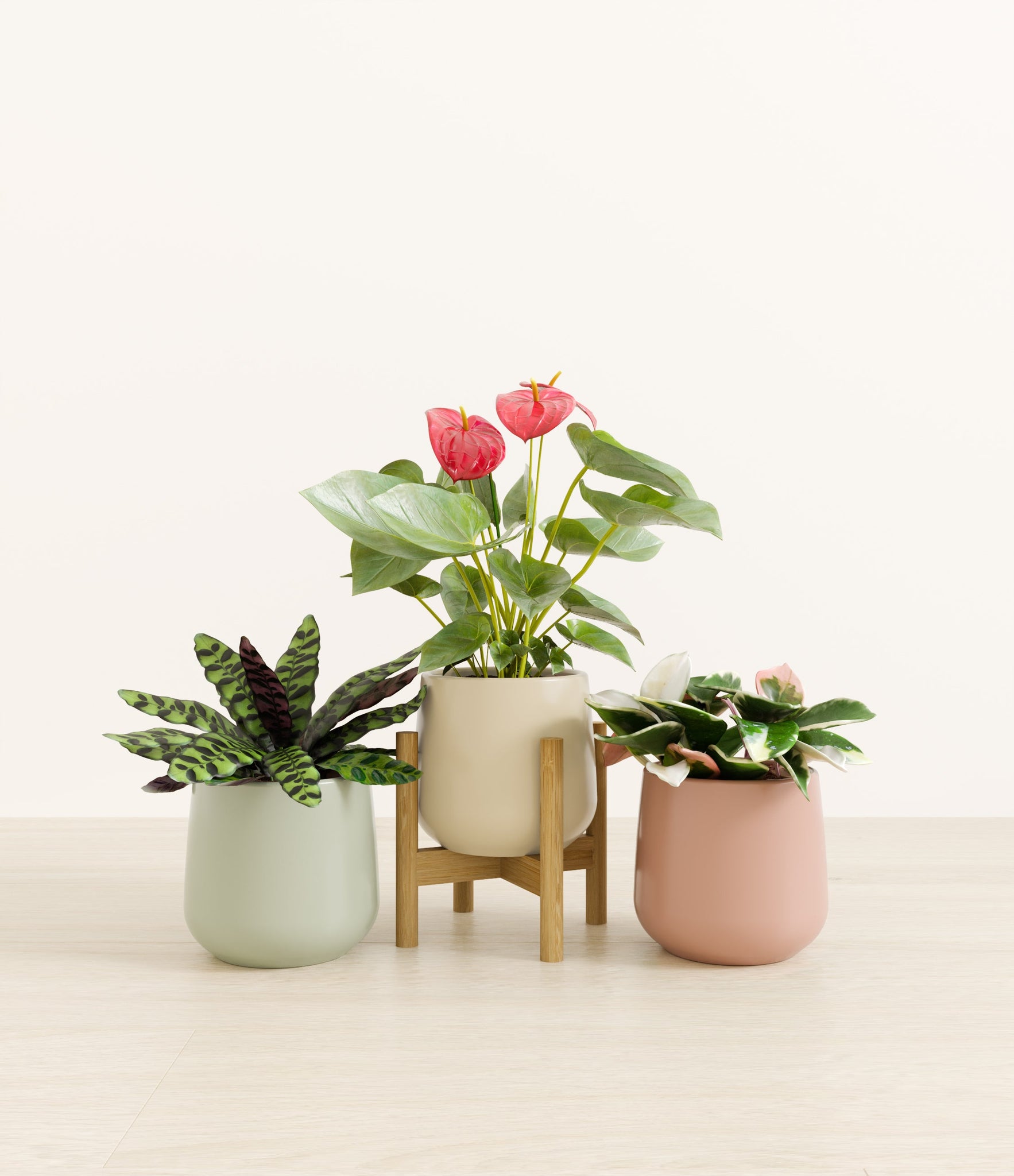 *****Celebrate the spirit of Christmas with a trio that captures the joy and warmth of the season. The small Anthurium Red shines with its festive, heart shaped blooms, symbolising love and generosity. The small Calathea Lancifolia brings playful texture with its patterned leaves and deep plum underside. Completing the trio, the small Hoya Tri Colour trails elegantly with waxy foliage variegated in soft pink, white, and green. Together, they create a radiant display of colour and charm, perfect for brightening your home or gifting to someone special.