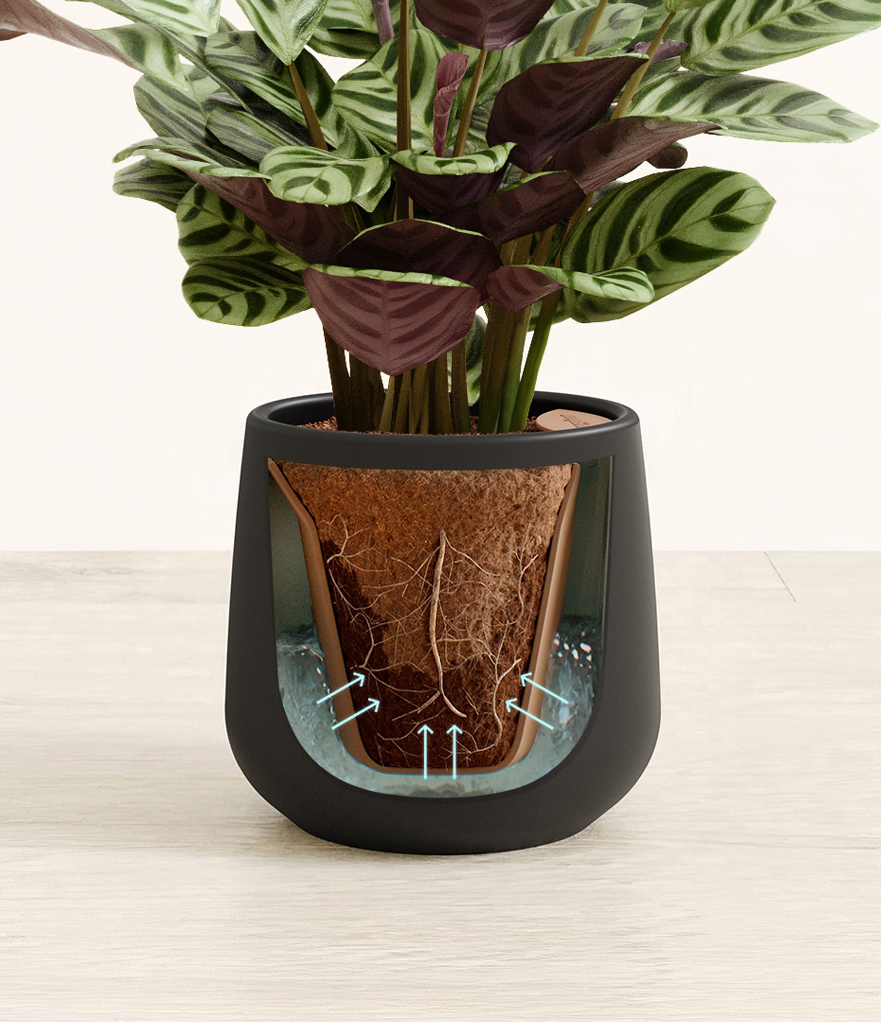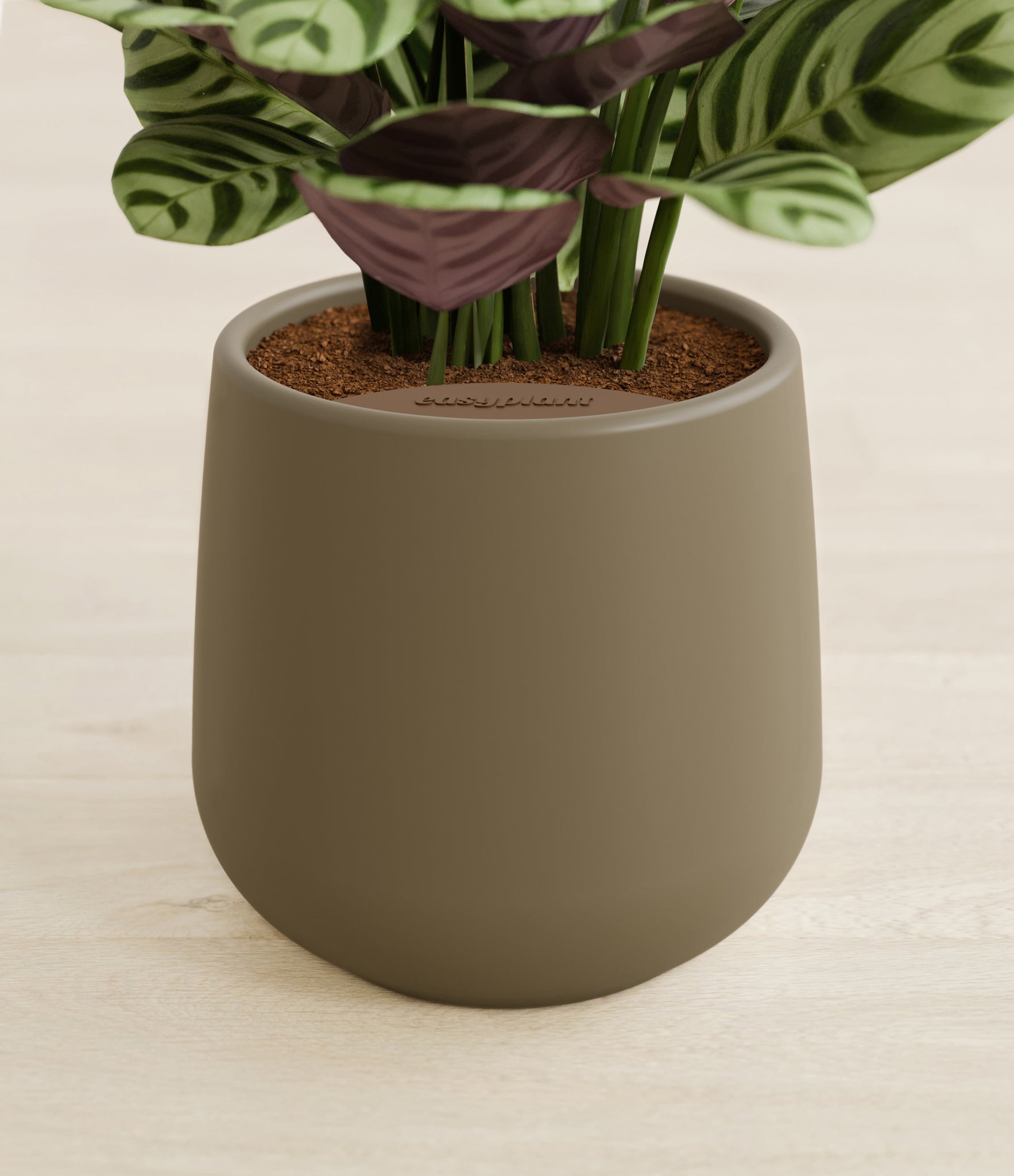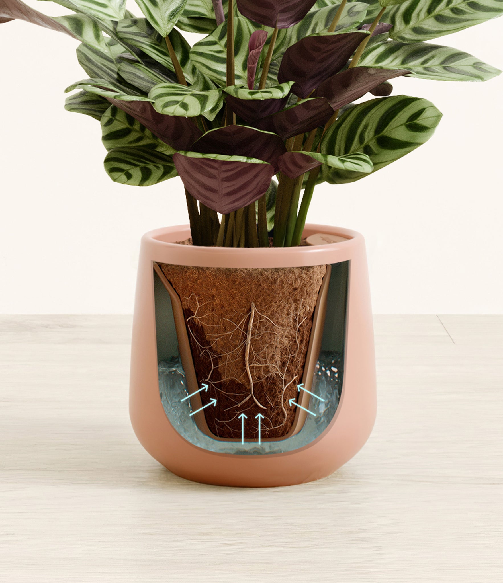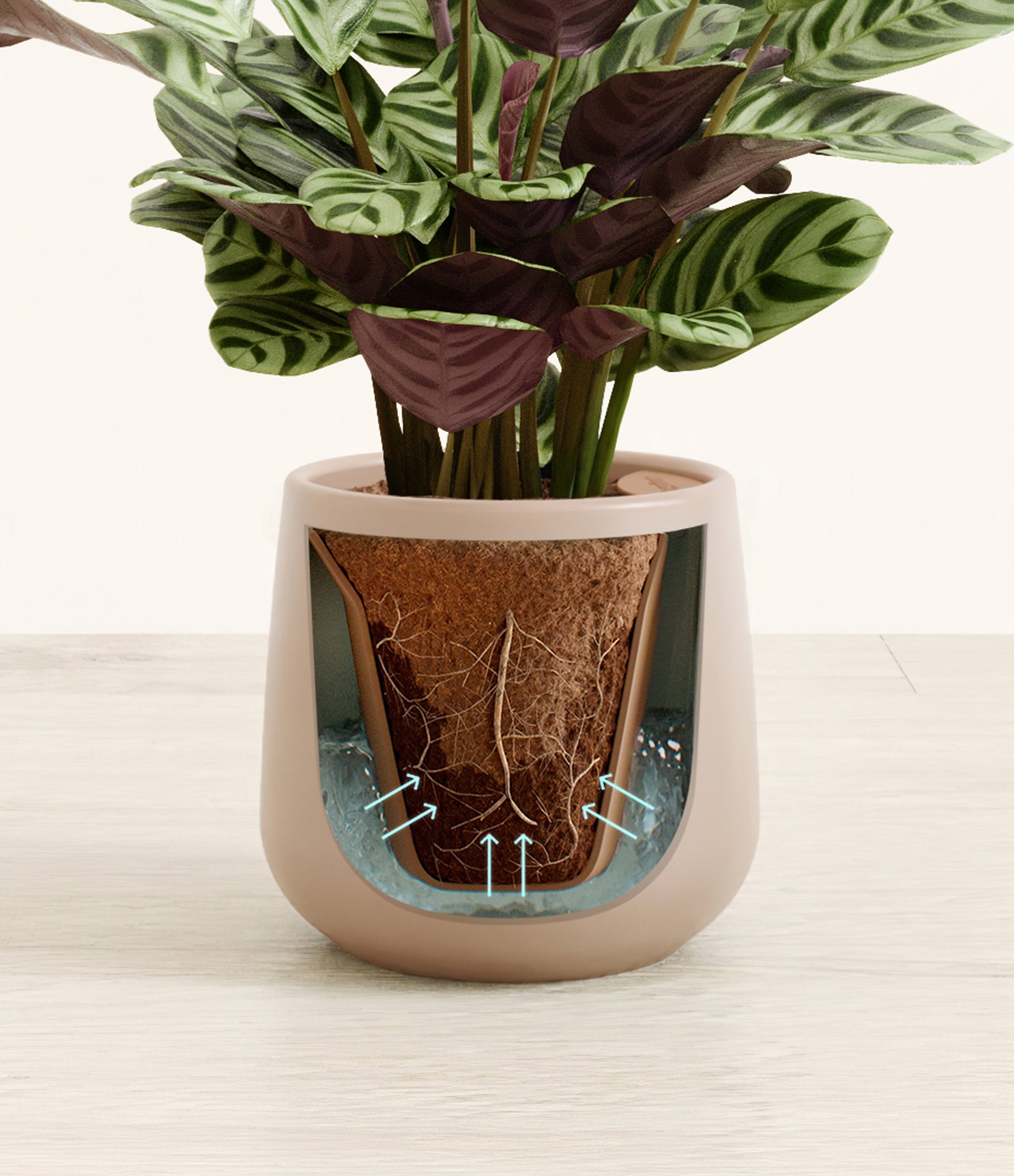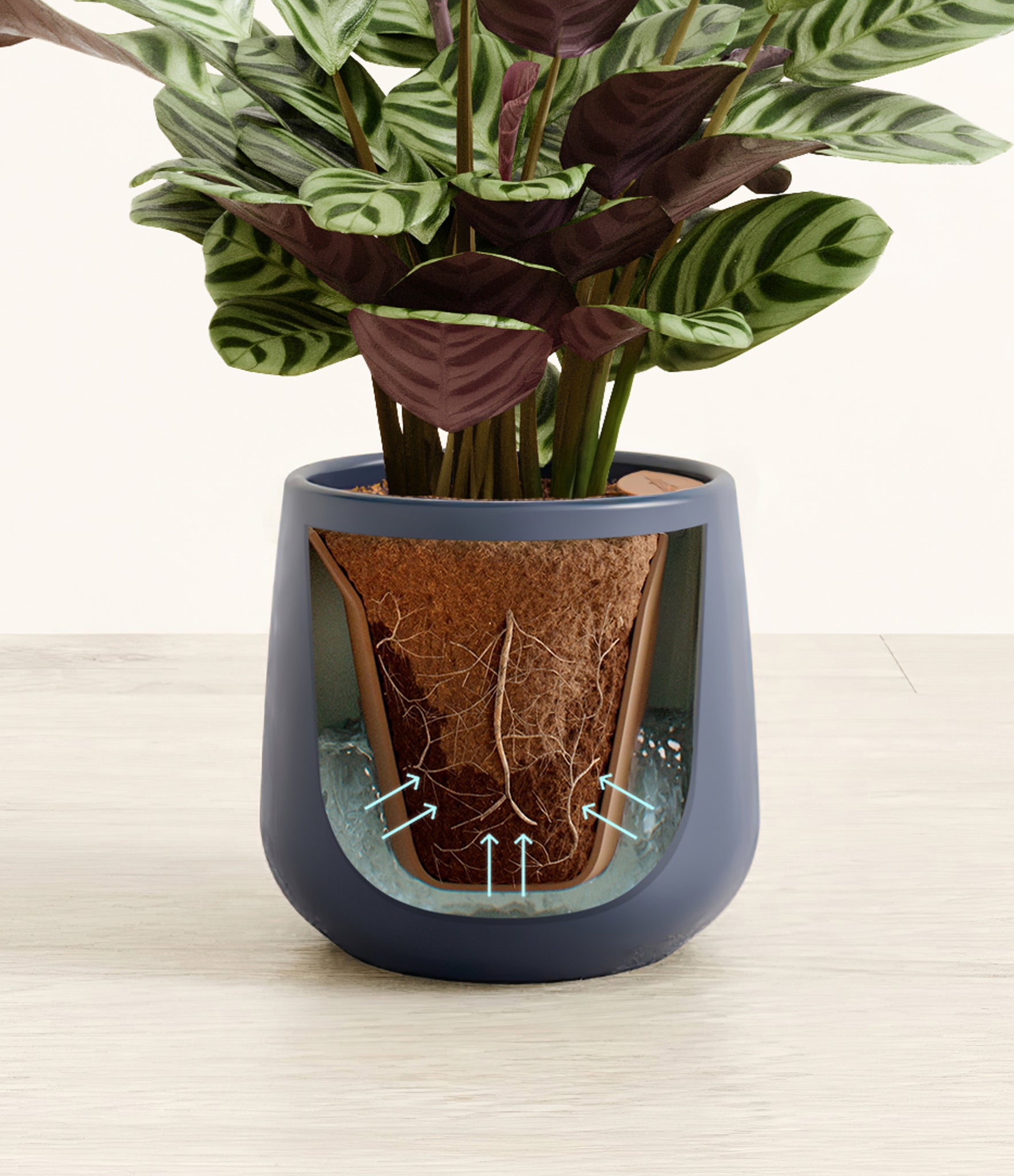 Native to the Amazonian jungles of South America, Calathea Burle Marxii features large, emblem-shaped leaves with bold strokes of forest green on top and deep burgundy underneath. This plant belongs to the Marantaceae family, also known as 'Prayer Plants'. These plants have a unique circadian rhythm, causing their leaves to move up at night and down during the day, in search of the sun, mimicking a wake-and-sleep cycle similar to humans.