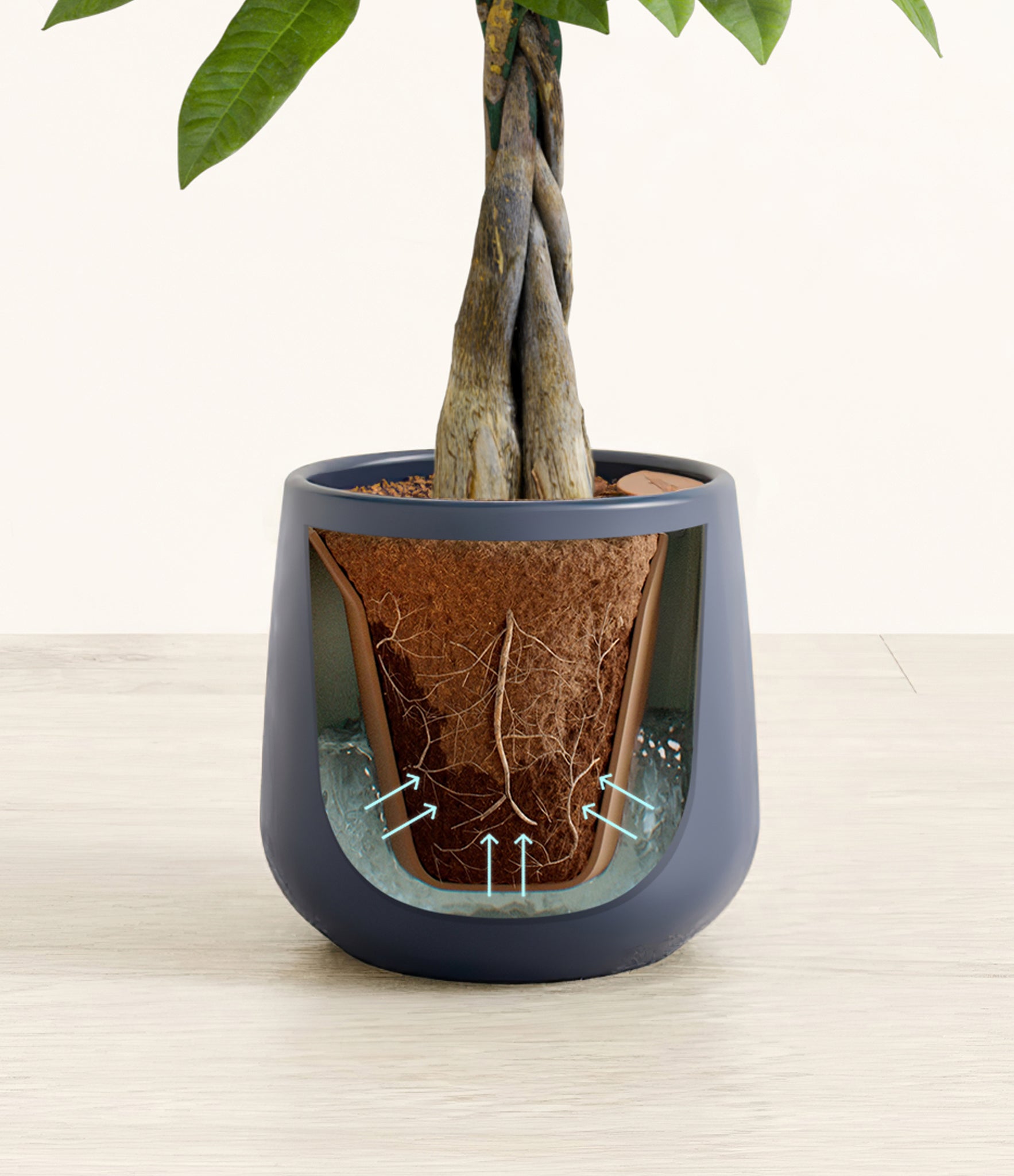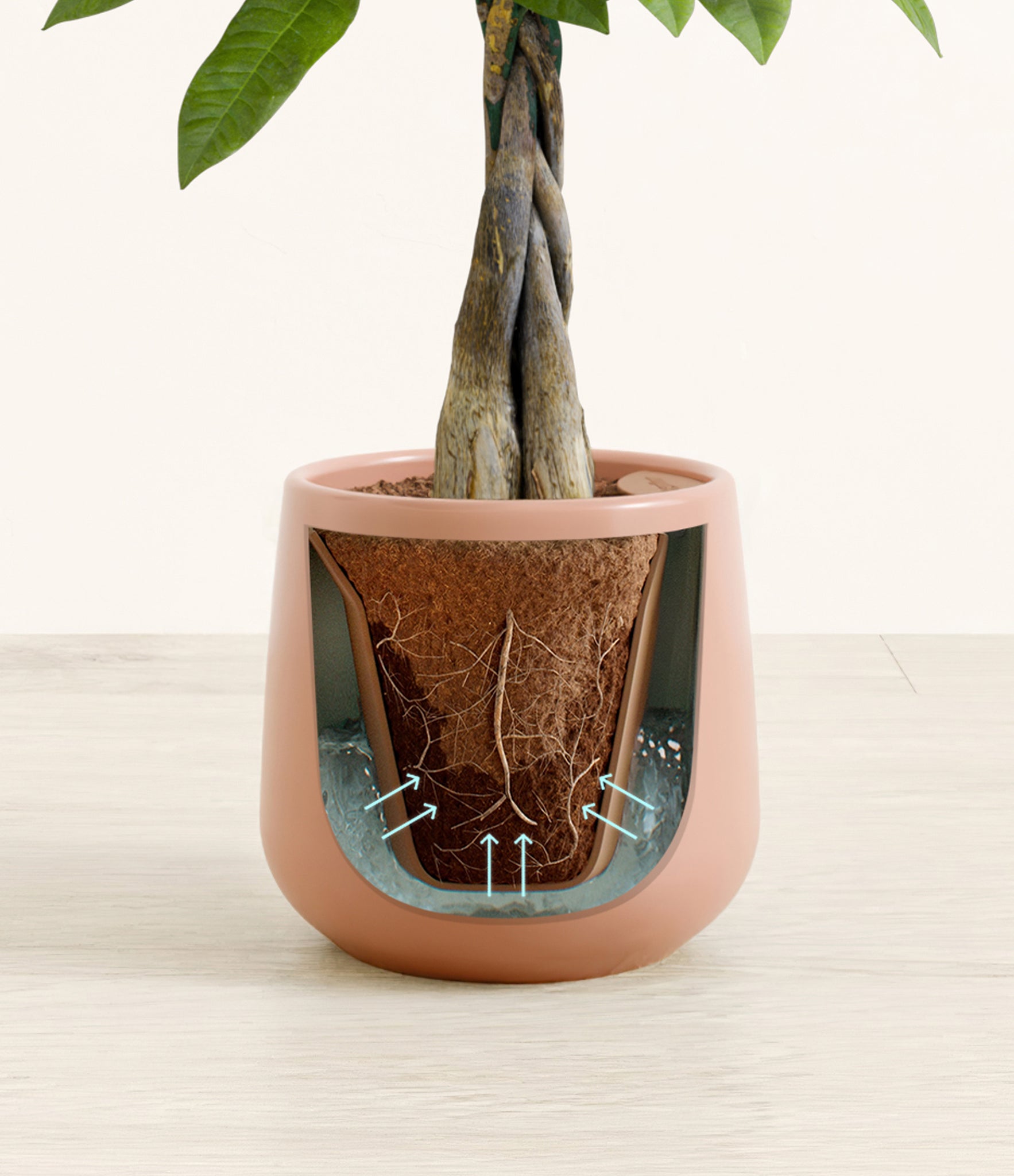 Though native to Mexico and South America, the Money Tree rose to fame in East Asia, where it is cultivated as one of the luckiest ornaments, symbolising prosperity. Its trunk is believed to hold good fortune within its folds, and its palmate leaves resemble open hands offering great abundance. Despite its impressive appearance and symbolic meaning, this evergreen is very easy to care for, making it a great indoor plant.